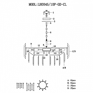 Подвесная люстра Augusta LH0045/10P-GD-CL