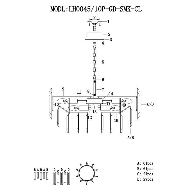 | Артикул | LH0045/10P-GD-SMK-CL |