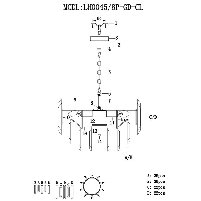 Производитель Lumien Hall Артикул LH0045/8P-GD-CL Страна