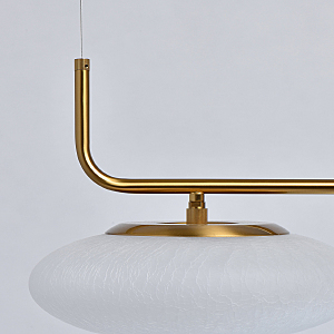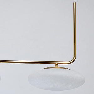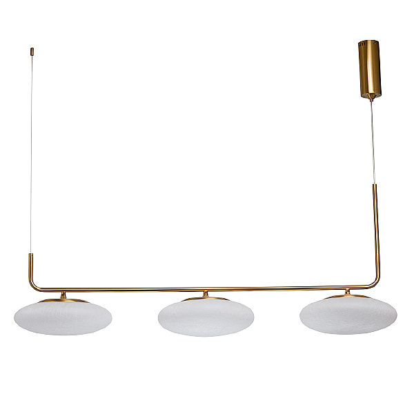 Оригинальная конструкция подвесов в виде парящей планки.Большие матовые плафоны из фактурного стекла обеспечивают мягкий ровный свет.Длина подвеса регулируется под требуемую высотуЭнергоэффективные LED надежны и долговечны в использовании.Возможно подключение диммера.