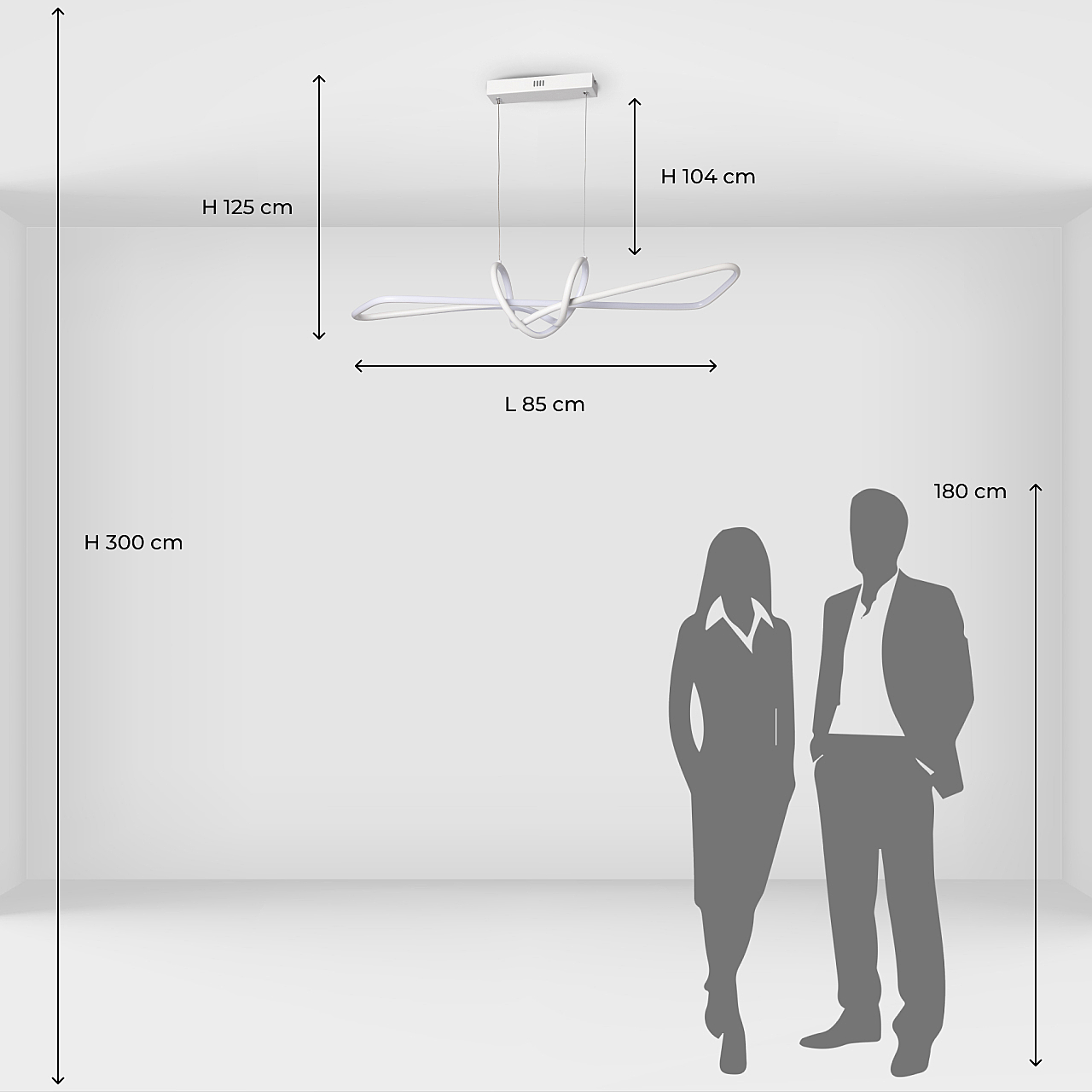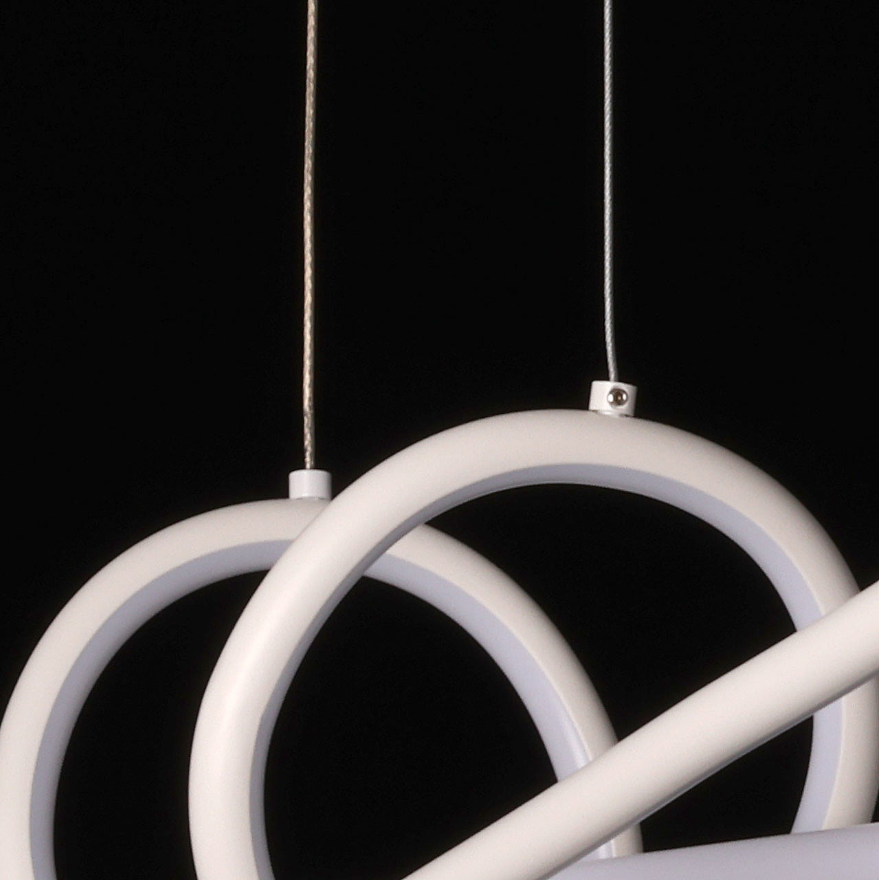 Белый цвет основания придает потолочной люстре легкости и воздушности. Изящно изогнутый плафон создает единый и гармоничный образ светильника. Белый силикон плафона мягко рассеивает свет. Возможность регулировать комфортную высоту. Светодиодные источники света экономичны и безопасны.