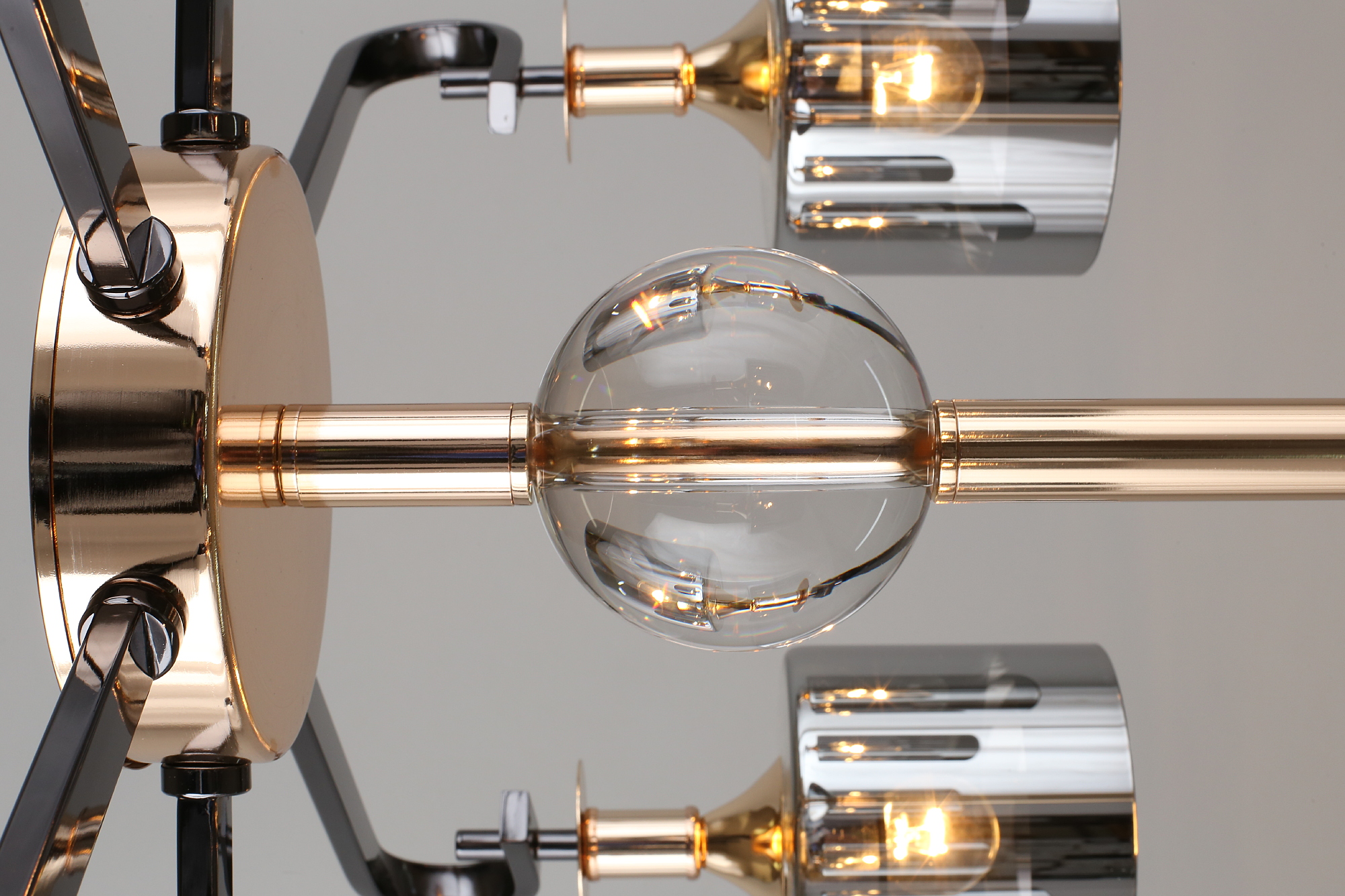 Допускается отличие страны-изготовителя, указанной в характеристиках. Линии производства могут находиться в нескольких государствах. Это не влияет на качество изготовления товара: все заводы данного бренда работают по общим стандартам, а готовые изделия проходят соответствующий контроль.Китай Коллекция Ausonia ЦветЦвет арматуры Золото, Черный Цвет Золото Материал арматуры Металл Цвет декора прозрачный Цвет плафона Зеркальный Материал декора Хрусталь Материал плафона Стекло РазмерыВысота (мм) 1200 Диаметр (мм) 700 Высота минимальная (мм) 700 Ширина (мм) 700 ЭлектрикаКоличество ламп (шт) 6 Цоколь E27 Лампочки в комплекте Нет в комплекте Мощность лампы (Вт) 40 Общая мощность (Вт) 240 Световой поток 2520 Дополнительная информацияСпособ крепления Планка Вес (Кг) 5,8 Тип подвеса На цепи -