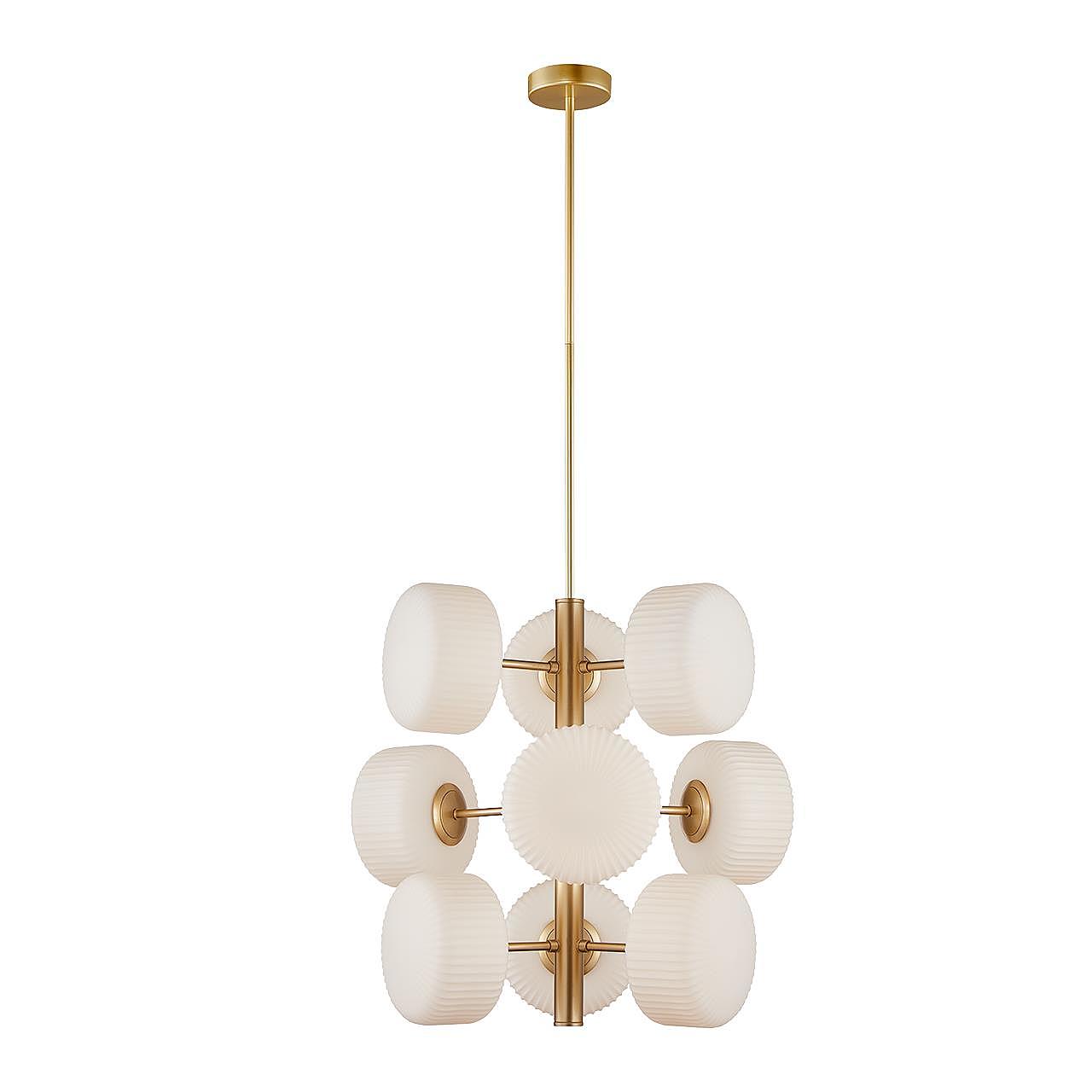 Допускается отличие страны-изготовителя, указанной в характеристиках. Линии производства могут находиться в нескольких государствах. Это не влияет на качество изготовления товара: все заводы данного бренда работают по общим стандартам, а готовые изделия проходят соответствующий контроль.Германия Коллекция Avalon ЦветЦвет арматуры золото матовое Цвет Золото Материал арматуры Металл Цвет плафона белый матовый Материал плафона Стекло РазмерыВысота (мм) 750 Диаметр (мм) 755 Ширина (мм) 755 ЭлектрикаКоличество ламп (шт) 9 Цоколь G9 Общая мощность (Вт) 63 Напряжение (В) 220 Дополнительная информацияСтепень защиты (IP) IP20 -