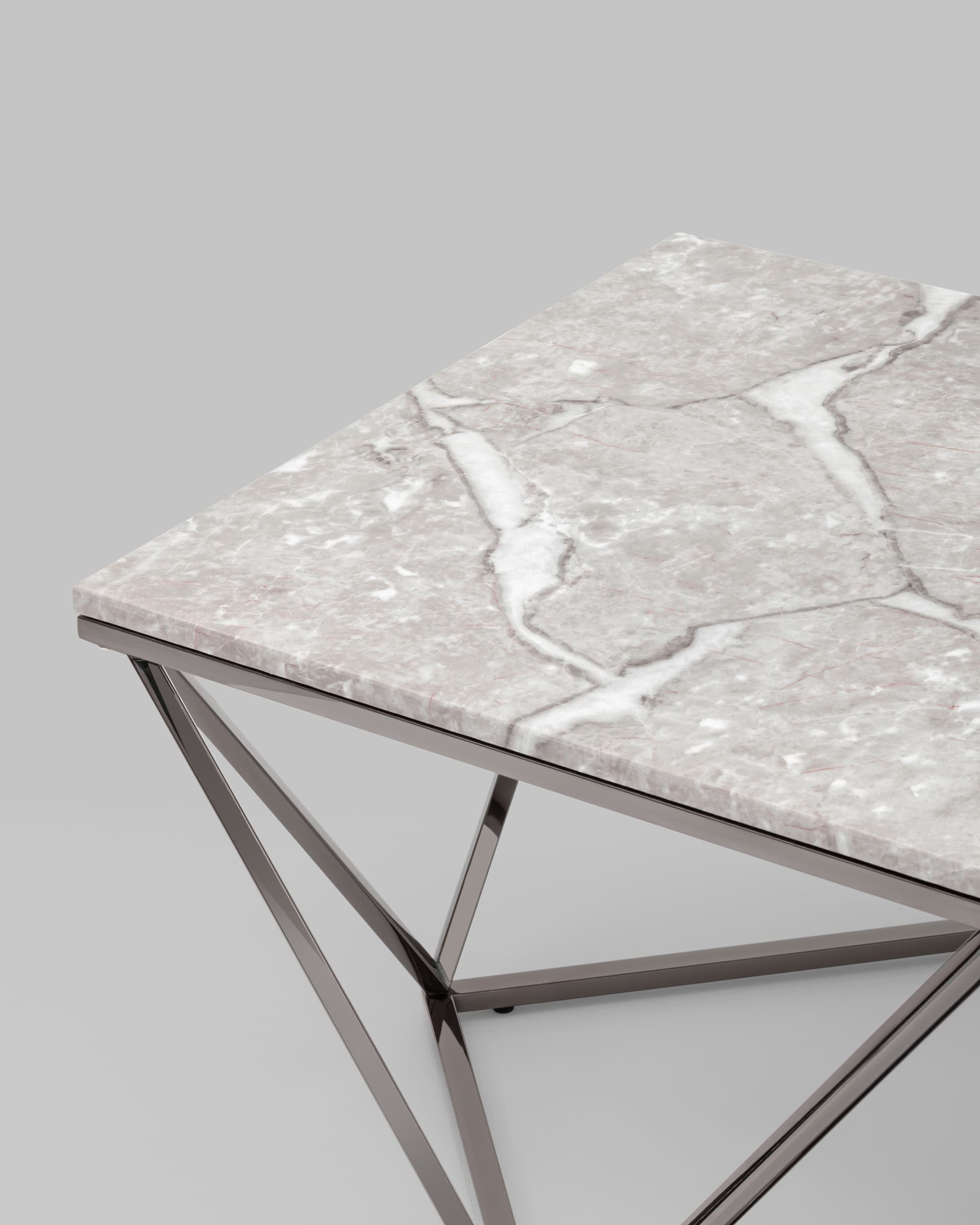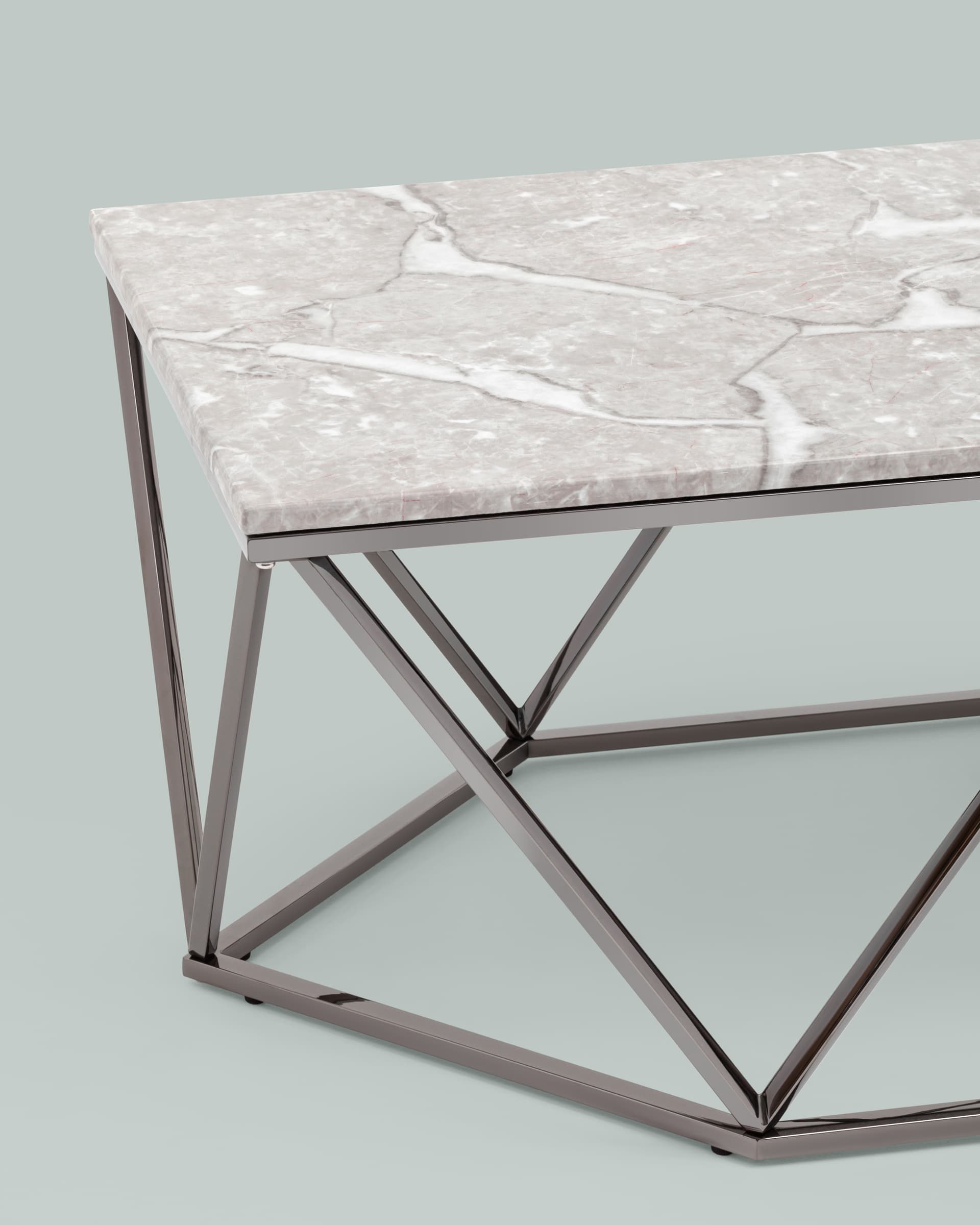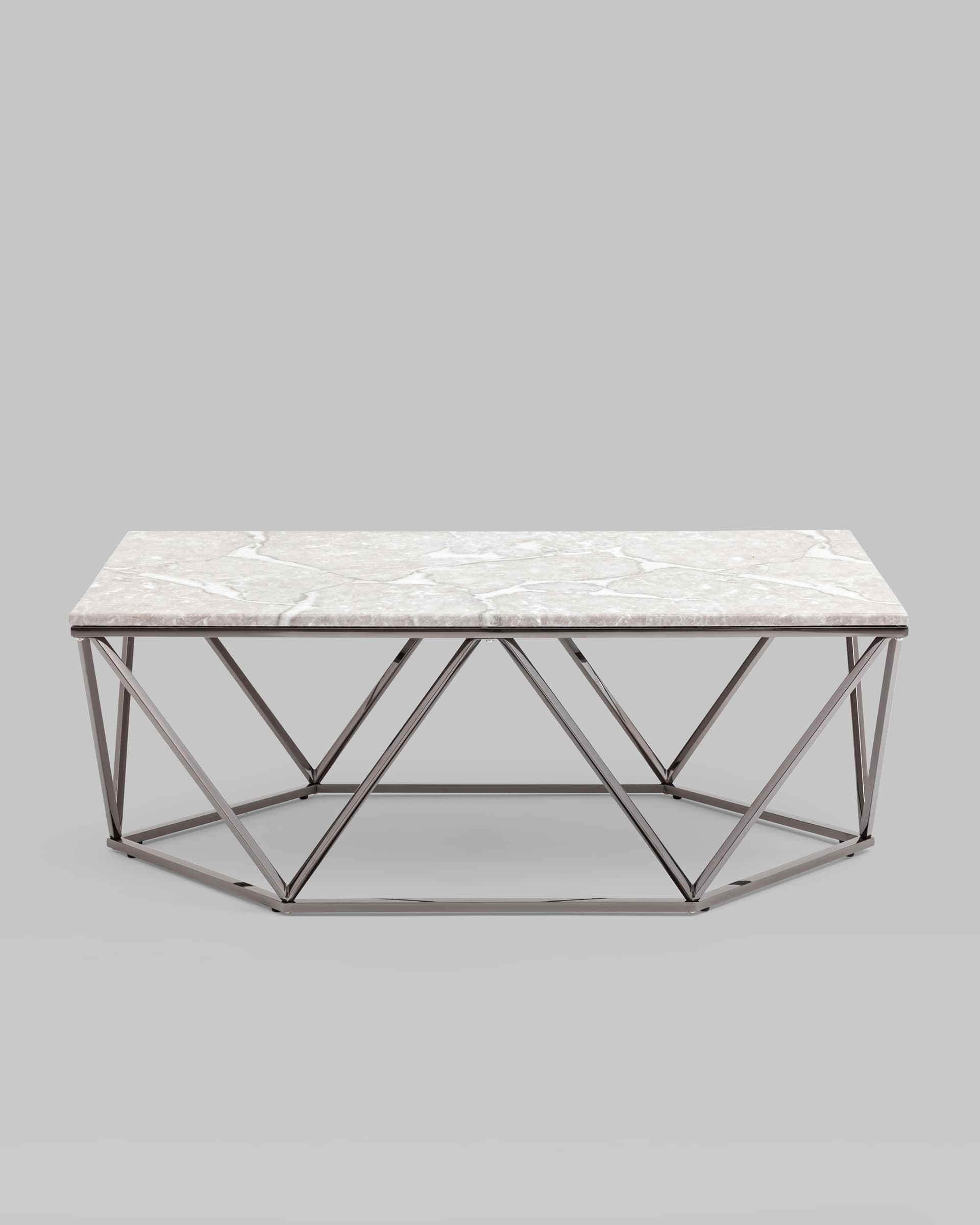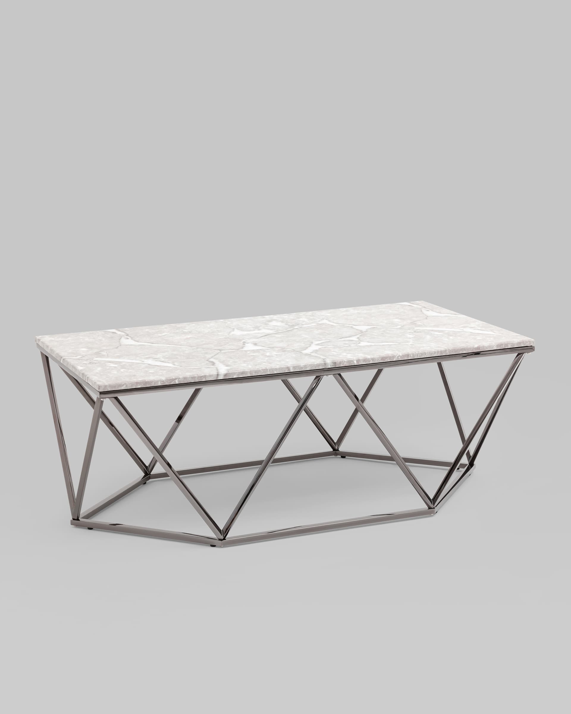 Журнальный столик Авалон 122*66 серый мрамор каркас нержавеющая сталь темный хром