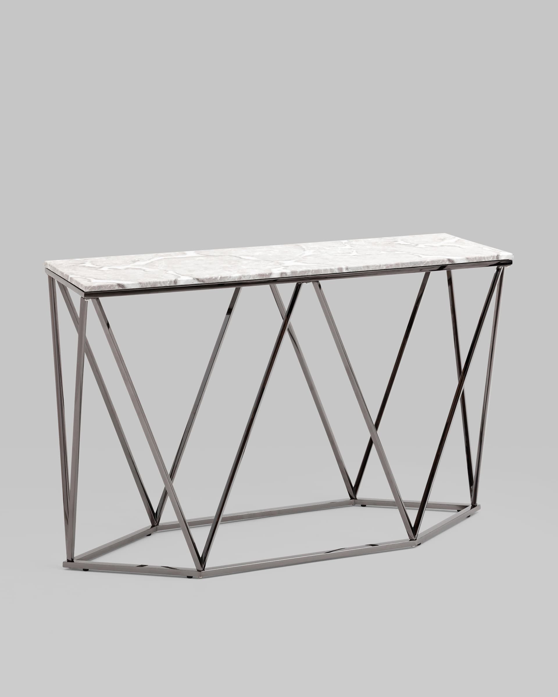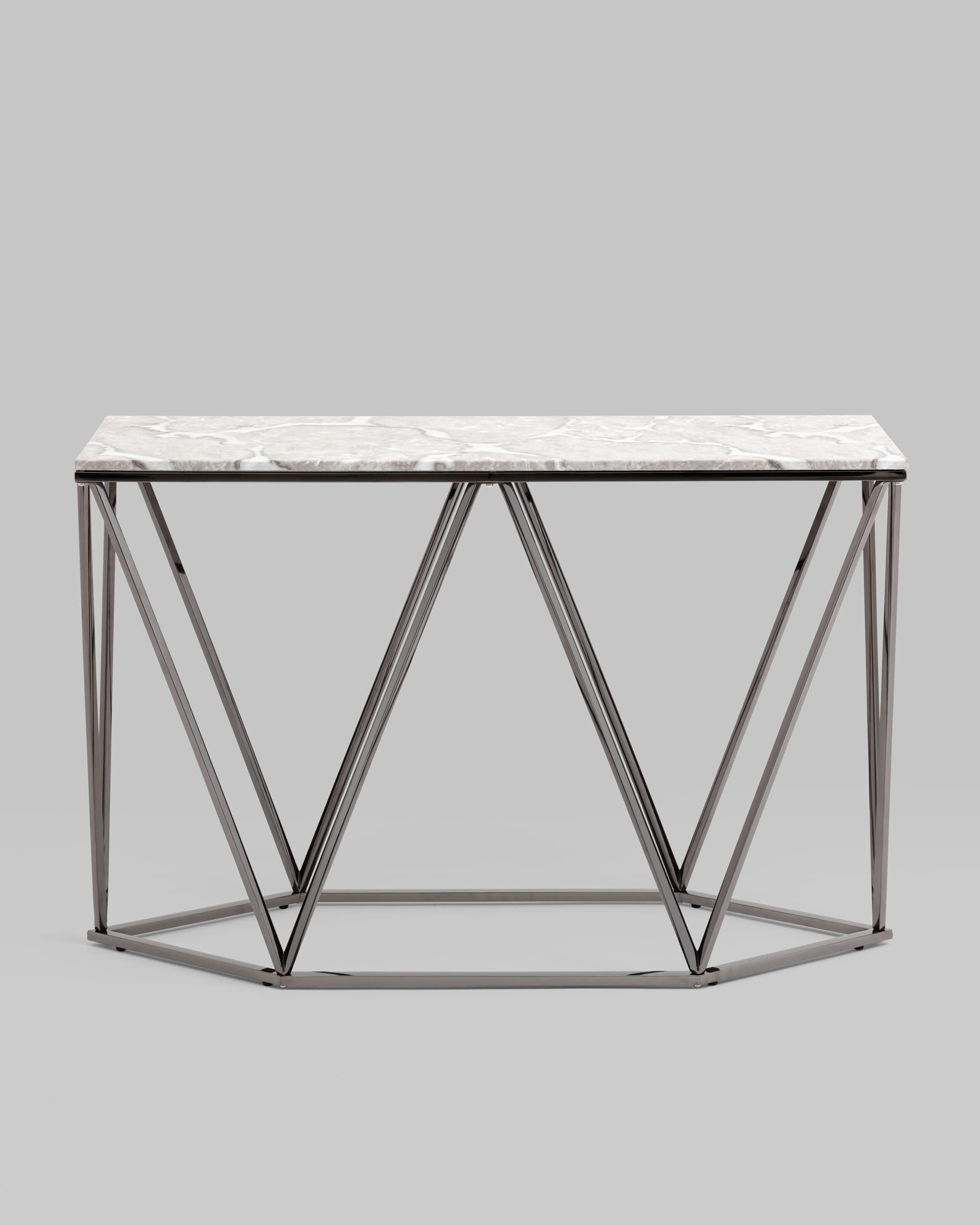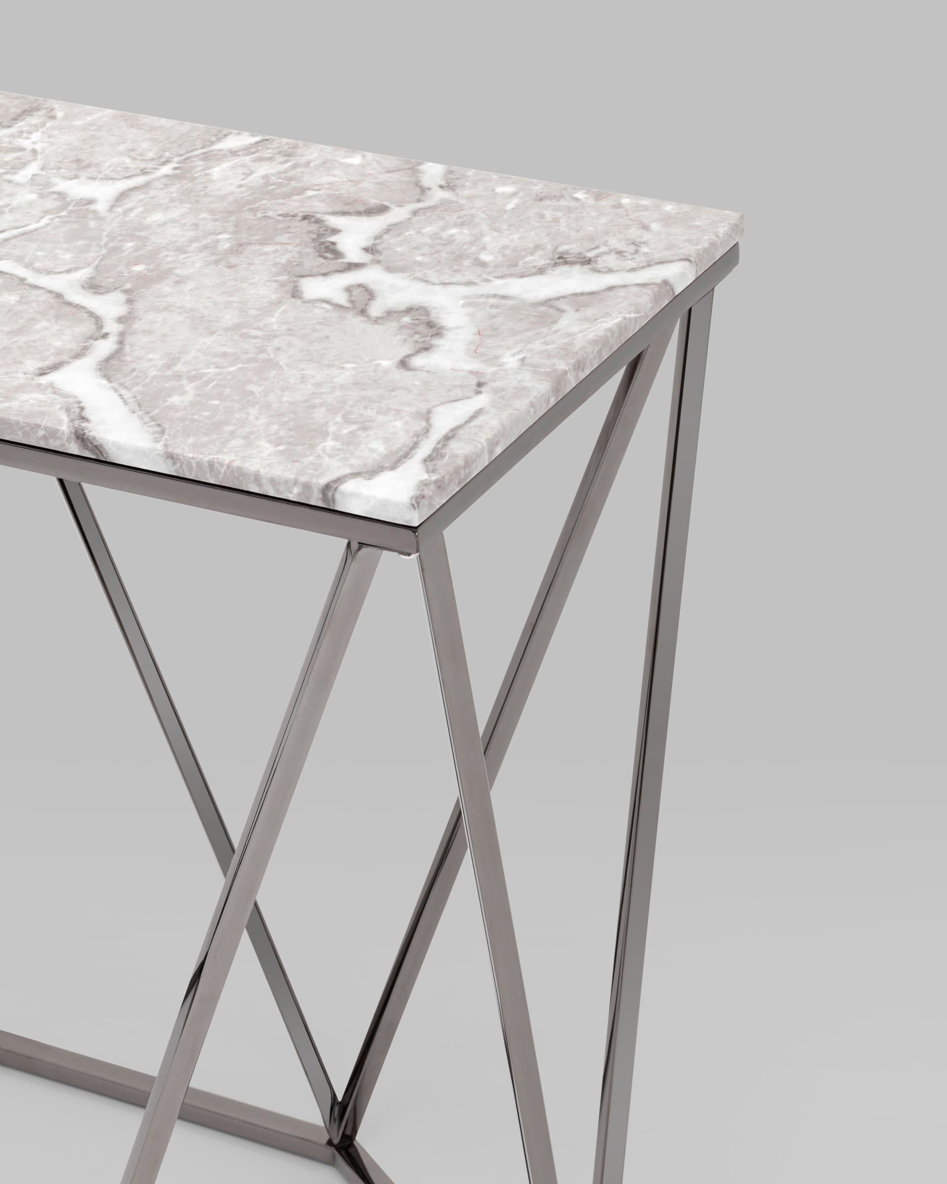 Консоль Авалон 122*41 серый мрамор каркас нержавеющая сталь темный хром