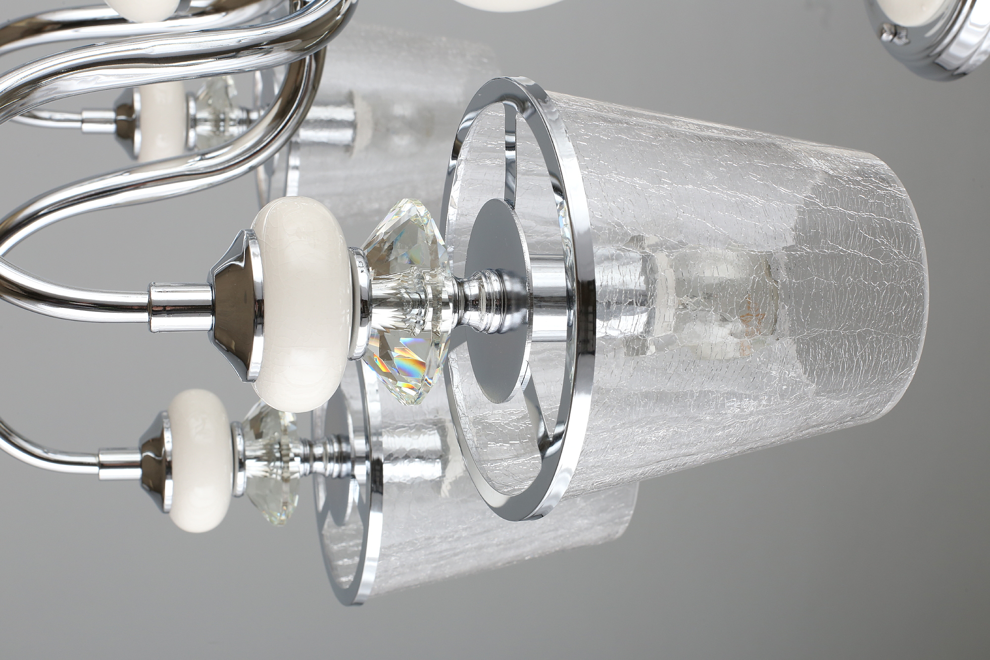 Допускается отличие страны-изготовителя, указанной в характеристиках. Линии производства могут находиться в нескольких государствах. Это не влияет на качество изготовления товара: все заводы данного бренда работают по общим стандартам, а готовые изделия проходят соответствующий контроль.Китай Коллекция Aviano ЦветЦвет арматуры Хром Цвет Хром Материал арматуры Металл Цвет декора прозрачный Цвет плафона прозрачный Материал декора Хрусталь Материал плафона Стекло РазмерыВысота (мм) 1200 Диаметр (мм) 700 Высота минимальная (мм) 500 Ширина (мм) 700 ЭлектрикаКоличество ламп (шт) 6 Цоколь E14 Лампочки в комплекте Нет в комплекте Мощность лампы (Вт) 40 Общая мощность (Вт) 240 Напряжение (В) 220 Световой поток 2520 Дополнительная информацияСпособ крепления Планка Степень защиты (IP) IP20 Вес (Кг) 8.7 Тип подвеса На цепи -
