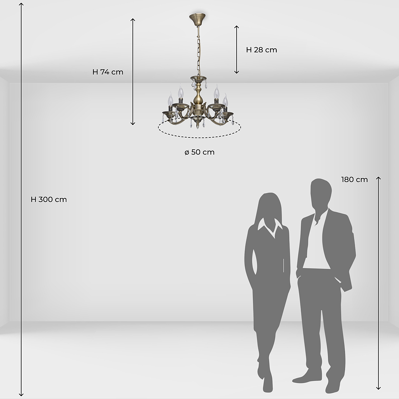Допускается отличие страны-изготовителя, указанной в характеристиках. Линии производства могут находиться в нескольких государствах. Это не влияет на качество изготовления товара: все заводы данного бренда работают по общим стандартам, а готовые изделия проходят соответствующий контроль.Германия Коллекция Аврора ЦветЦвет арматуры Античная латунь Цвет Латунь Материал арматуры Металл РазмерыВысота (мм) 740 Диаметр (мм) 500 Высота минимальная (мм) 460 Ширина (мм) 500 ЭлектрикаКоличество ламп (шт) 5 Цоколь E14 Мощность лампы (Вт) 60W Напряжение (В) 220 Дополнительная информацияСтепень защиты (IP) IP20 Вес (Кг) 2.02 Тип подвеса На цепи -
