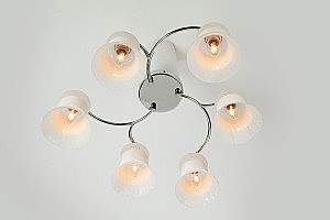 Допускается отличие страны-изготовителя, указанной в характеристиках. Линии производства могут находиться в нескольких государствах. Это не влияет на качество изготовления товара: все заводы данного бренда работают по общим стандартам, а готовые изделия проходят соответствующий контроль.Китай Коллекция Аврора ЦветЦвет арматуры Хром Цвет Хром Материал арматуры Металл Цвет плафона Белый Материал плафона Стекло РазмерыВысота (мм) 200 Длина (мм) 520 Ширина (мм) 520 ЭлектрикаКоличество ламп (шт) 6 Цоколь E27 Мощность лампы (Вт) 60W Напряжение (В) 220 -
