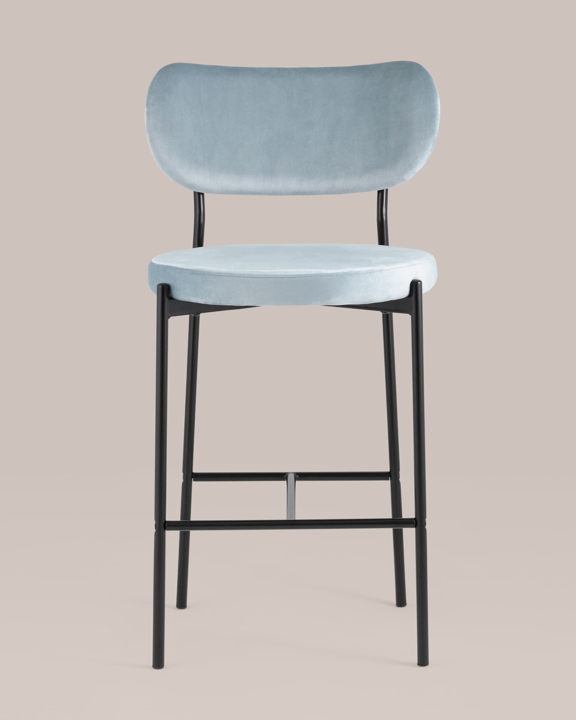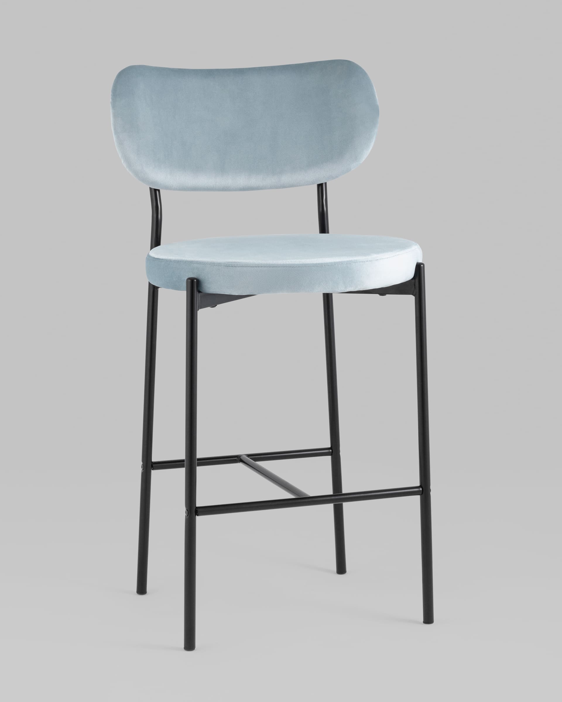 Стул полубарный Барбара велюр серо-голубой ножки из металла черные