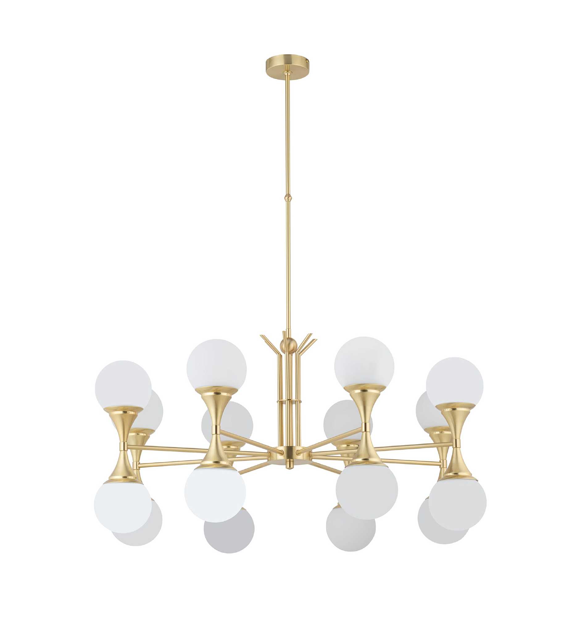 Восьмилучевая люстра BAR-ZW-8 (ZM) - впечатляющая модель для интерьеров с высоким потолком. Матовая латунь подчёркивает сдержанную роскошь, а стеклянные плафоны обеспечивают хорошую яркость без излишней резкости. Прекрасный выбор для столовой зоны.