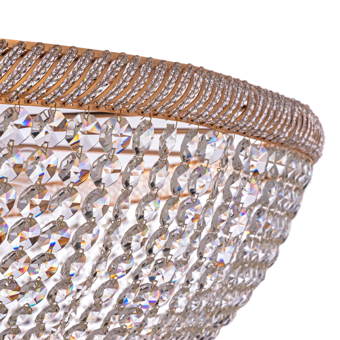 Допускается отличие страны-изготовителя, указанной в характеристиках. Линии производства могут находиться в нескольких государствах. Это не влияет на качество изготовления товара: все заводы данного бренда работают по общим стандартам, а готовые изделия проходят соответствующий контроль.Италия Коллекция Bari Gold ЦветЦвет арматуры золотой Цвет Прозрачный Материал арматуры Металл Цвет декора прозрачный Цвет плафона прозрачный Материал декора Хрусталь РазмерыВысота (мм) 640 Диаметр (мм) 1300 Ширина (мм) 1300 ЭлектрикаКоличество ламп (шт) 18 Цоколь E27 Тип лампы Накаливания Мощность лампы (Вт) 60 Общая мощность (Вт) 1 080 Напряжение (В) 220 Площадь освещения 60 Дополнительная информацияСтепень защиты (IP) IP20 Место установки на потолок Вес (Кг) 40,5 -