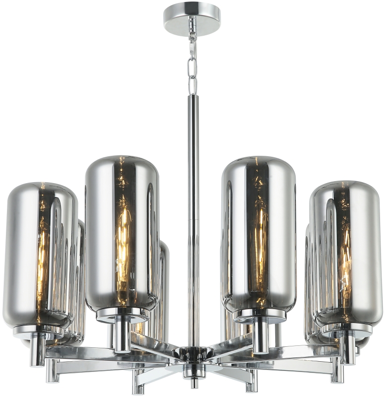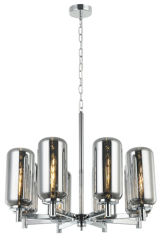 Люстра подвесная из коллекции Bauers выполнена из металла, гальванизированного в цвет хрома, и декорирована овальными вытянутыми плафонами дымчатого цвета. Плафоны устанавливаются за счет винтовой резьбы. Благодаря широкой арматуре люстра коллекции выглядит стильно и респектабельно. Премиальное качество и неповторимыи? дизаи?н светильников идеально подои?дут как в классические, так и современные дизайнерские интерьеры.