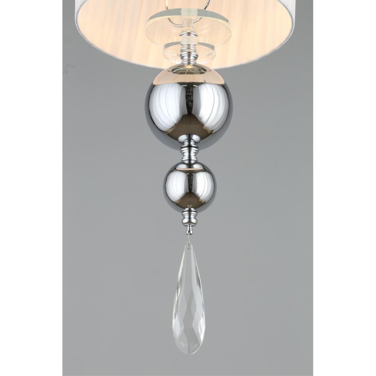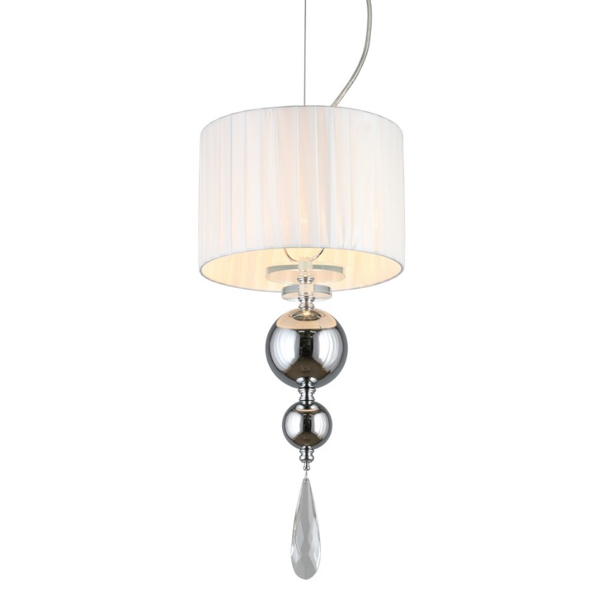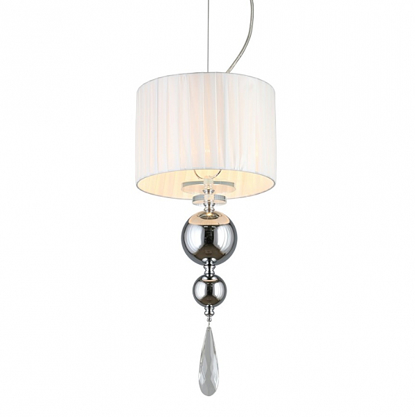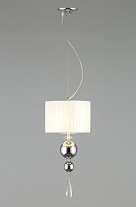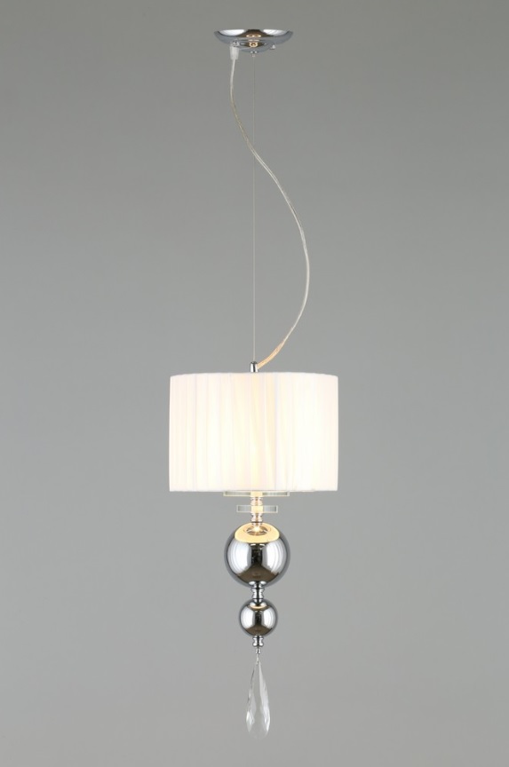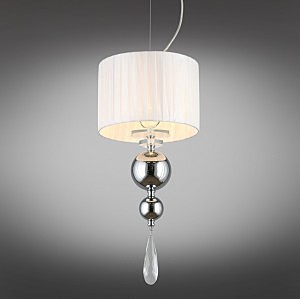 Допускается отличие страны-изготовителя, указанной в характеристиках. Линии производства могут находиться в нескольких государствах. Это не влияет на качество изготовления товара: все заводы данного бренда работают по общим стандартам, а готовые изделия проходят соответствующий контроль.Китай Коллекция Bavenno ЦветЦвет арматуры Хром Цвет Хром Материал арматуры Металл, Стекло Цвет декора прозрачный Цвет плафона Белый Материал декора Хрусталь Материал плафона Ткань РазмерыВысота (мм) 1500 Диаметр (мм) 250 Высота минимальная (мм) 800 Ширина (мм) 250 ЭлектрикаКоличество ламп (шт) 1 Цоколь E14 Лампочки в комплекте Нет в комплекте Мощность лампы (Вт) 40 Общая мощность (Вт) 40 Напряжение (В) 220 Световой поток 420 Дополнительная информацияСпособ крепления Планка Вес (Кг) 1,50 Тип подвеса На тросах Количество подвесов Одиночный подвес -