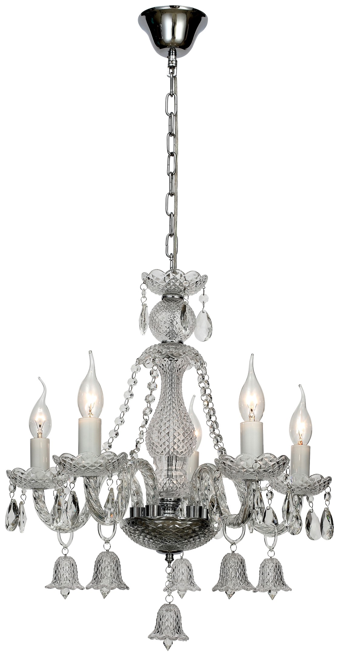 Допускается отличие страны-изготовителя, указанной в характеристиках. Линии производства могут находиться в нескольких государствах. Это не влияет на качество изготовления товара: все заводы данного бренда работают по общим стандартам, а готовые изделия проходят соответствующий контроль.Италия Коллекция Bella ЦветЦвет арматуры Хром, Белый Цвет Прозрачный Материал арматуры Металл, Стекло Цвет декора прозрачный Материал декора Хрусталь РазмерыВысота (мм) 550 Длина (мм) 500 Диаметр (мм) 500 Ширина (мм) 500 ЭлектрикаКоличество ламп (шт) 5 Цоколь E14 Лампочки в комплекте Нет в комплекте Мощность лампы (Вт) 40 Напряжение (В) 220 Площадь освещения 10 Дополнительная информацияСтепень защиты (IP) IP20 Тип подвеса На цепи -