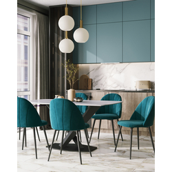 Стол обеденный Belle 160х90 столешница белый мрамор керамика ножки черные мдф