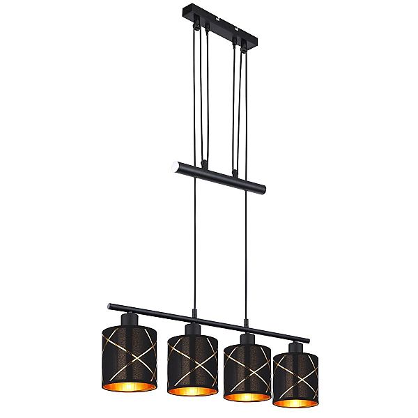 Допускается отличие страны-изготовителя, указанной в характеристиках. Линии производства могут находиться в нескольких государствах. Это не влияет на качество изготовления товара: все заводы данного бренда работают по общим стандартам, а готовые изделия проходят соответствующий контроль.Австрия Коллекция Bemmo ЦветЦвет арматуры Черный Цвет Черный Материал арматуры Металл Цвет плафона Черный Материал плафона Текстиль РазмерыВысота (мм) 1400 Длина (мм) 760 Ширина (мм) 130 ЭлектрикаКоличество ламп (шт) 4 Цоколь E27 Мощность лампы (Вт) 25 Дополнительная информацияВес (Кг) 3,1 Тип подвеса На тросах Количество подвесов Одиночный подвес -