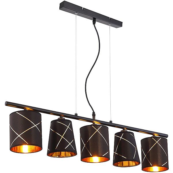 Допускается отличие страны-изготовителя, указанной в характеристиках. Линии производства могут находиться в нескольких государствах. Это не влияет на качество изготовления товара: все заводы данного бренда работают по общим стандартам, а готовые изделия проходят соответствующий контроль.Австрия Коллекция Bemmo ЦветЦвет арматуры Черный Цвет Черный Материал арматуры Металл Цвет плафона Черный Материал плафона Текстиль РазмерыВысота (мм) 1400 Длина (мм) 900 Ширина (мм) 130 ЭлектрикаКоличество ламп (шт) 5 Цоколь E14 Лампочки в комплекте Нет в комплекте Мощность лампы (Вт) 25 Площадь освещения 6,25 Дополнительная информацияВес (Кг) 1,45 Тип подвеса На тросах Количество подвесов Одиночный подвес -