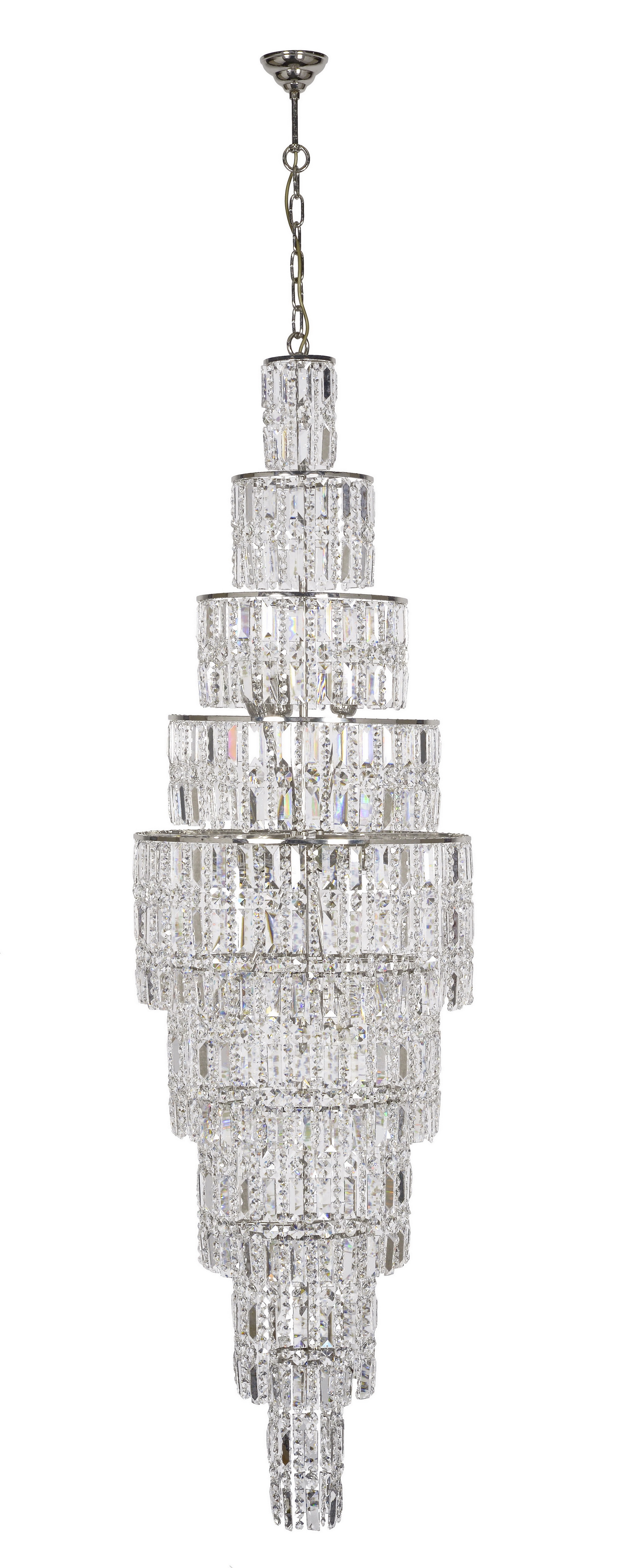 Допускается отличие страны-изготовителя, указанной в характеристиках. Линии производства могут находиться в нескольких государствах. Это не влияет на качество изготовления товара: все заводы данного бренда работают по общим стандартам, а готовые изделия проходят соответствующий контроль.Италия Коллекция Bergamo ЦветЦвет арматуры Никель Цвет Прозрачный Материал арматуры Металл Цвет декора прозрачный Материал декора Хрусталь РазмерыВысота (мм) 1670 Диаметр (мм) 500 Ширина (мм) 500 ЭлектрикаКоличество ламп (шт) 23 Цоколь E27 Мощность лампы (Вт) 60W Общая мощность (Вт) 1380W Напряжение (В) 220 Площадь освещения 69 Дополнительная информацияСтепень защиты (IP) IP20 Вес (Кг) 20 -