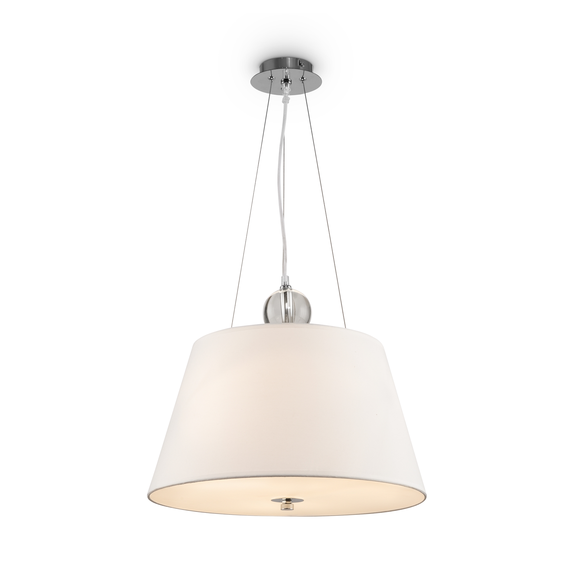 Допускается отличие страны-изготовителя, указанной в характеристиках. Линии производства могут находиться в нескольких государствах. Это не влияет на качество изготовления товара: все заводы данного бренда работают по общим стандартам, а готовые изделия проходят соответствующий контроль.Германия Коллекция Bergamo ЦветЦвет арматуры Хром Цвет Хром Материал арматуры Металл Цвет плафона Белый Материал плафона Текстиль РазмерыВысота (мм) 1765 Диаметр (мм) 420 Высота минимальная (мм) 465 Ширина (мм) 420 ЭлектрикаКоличество ламп (шт) 3 Цоколь E27 Мощность лампы (Вт) 60 Напряжение (В) 220 Дополнительная информацияВес (Кг) 3,2 Тип подвеса На тросах Количество подвесов Одиночный подвес -