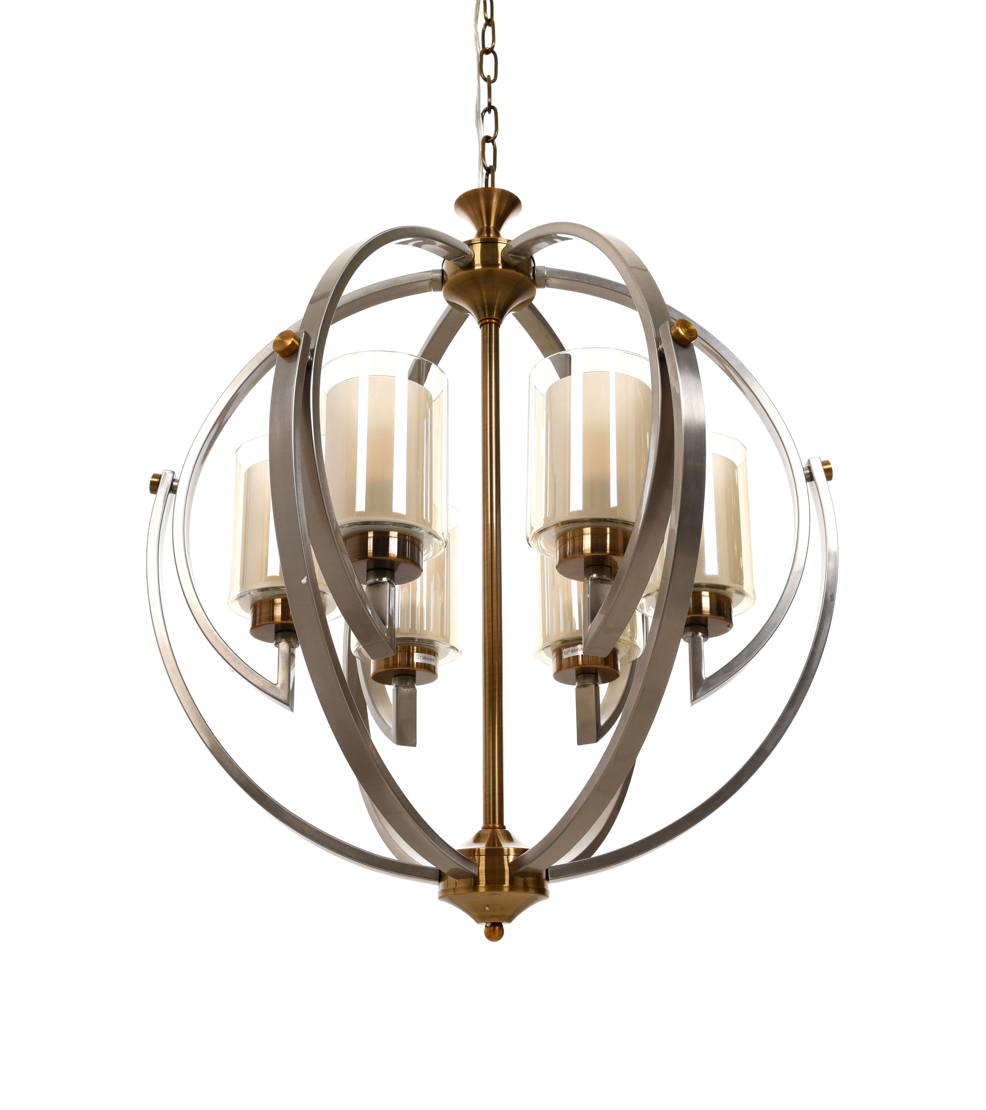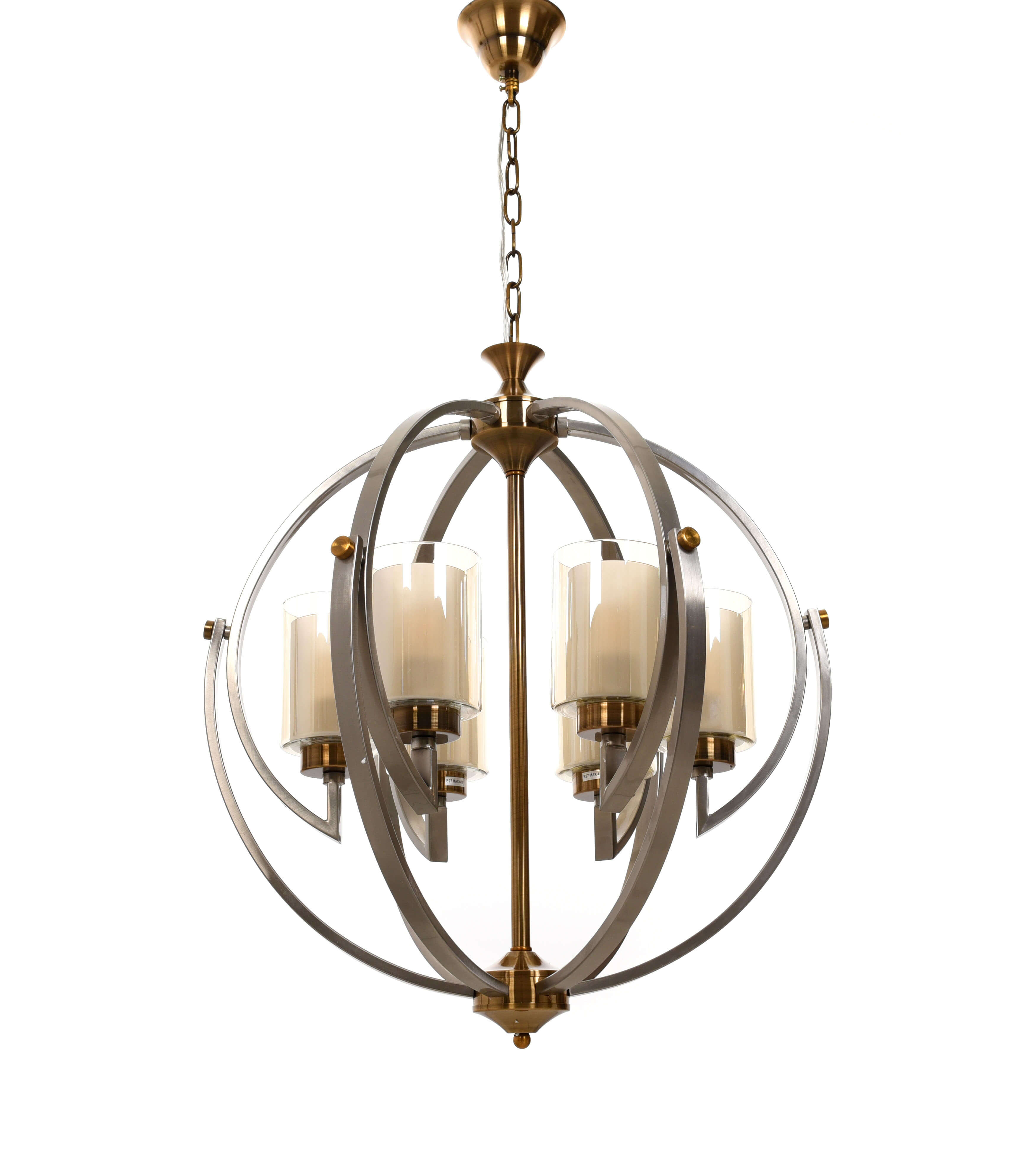 Допускается отличие страны-изготовителя, указанной в характеристиках. Линии производства могут находиться в нескольких государствах. Это не влияет на качество изготовления товара: все заводы данного бренда работают по общим стандартам, а готовые изделия проходят соответствующий контроль.Польша Коллекция Bergen ЦветЦвет арматуры Янтарный, дымчатый серый Цвет Янтарный Материал арматуры Металл Цвет плафона прозрачный, янтарный Материал плафона Стекло РазмерыВысота (мм) 610 Диаметр (мм) 560 Высота минимальная (мм) 650 Ширина (мм) 560 Диаметр абажура-плафона 130 ЭлектрикаКоличество ламп (шт) 6 Цоколь E27 Тип лампы все типы лампочек Лампочки в комплекте Нет в комплекте Мощность лампы (Вт) 40 Напряжение (В) 220 Дополнительная информацияСтепень защиты (IP) IP20 Вес (Кг) 10 Тип подвеса На цепи -