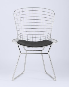 Стул обеденный Bertoia хромированный металл с черной подушкой из экокожи