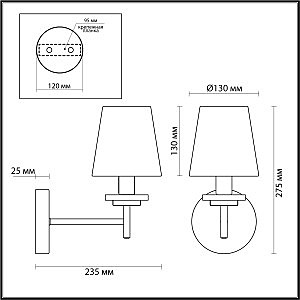 Допускается отличие страны-изготовителя, указанной в характеристиках. Линии производства могут находиться в нескольких государствах. Это не влияет на качество изготовления товара: все заводы данного бренда работают по общим стандартам, а готовые изделия проходят соответствующий контроль.Италия Коллекция Betsy ЦветЦвет арматуры Черный Цвет Черный Материал арматуры Металл Цвет декора дерево Цвет плафона коричневый Материал декора Дерево Материал плафона Текстиль РазмерыВысота (мм) 275 Длина (мм) 235 Ширина (мм) 130 Глубина (мм) 25 ЭлектрикаКоличество ламп (шт) 1 Цоколь E14 Тип лампы Накаливания Мощность лампы (Вт) 40 Общая мощность (Вт) 40 Напряжение (В) 220 Дополнительная информацияСпособ крепления Планка Степень защиты (IP) IP20 Вес (Кг) 0,600 -