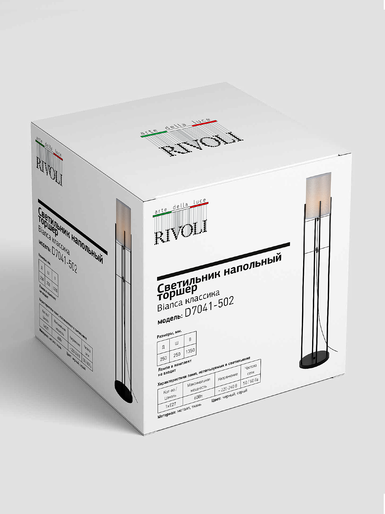 Допускается отличие страны-изготовителя, указанной в характеристиках. Линии производства могут находиться в нескольких государствах. Это не влияет на качество изготовления товара: все заводы данного бренда работают по общим стандартам, а готовые изделия проходят соответствующий контроль.Италия Коллекция Biancla ЦветЦвет арматуры Черный Цвет Черный Материал арматуры Металл Цвет плафона Серый Материал плафона Ткань РазмерыВысота (мм) 1350 Длина (мм) 250 Ширина (мм) 250 ЭлектрикаКоличество ламп (шт) 1 Цоколь E27 Мощность лампы (Вт) 60 Напряжение (В) 220 Площадь освещения 3 Дополнительная информацияСтепень защиты (IP) IP20 Тип выключателя Выключатель на шнуре Вес (Кг) 3,12 -