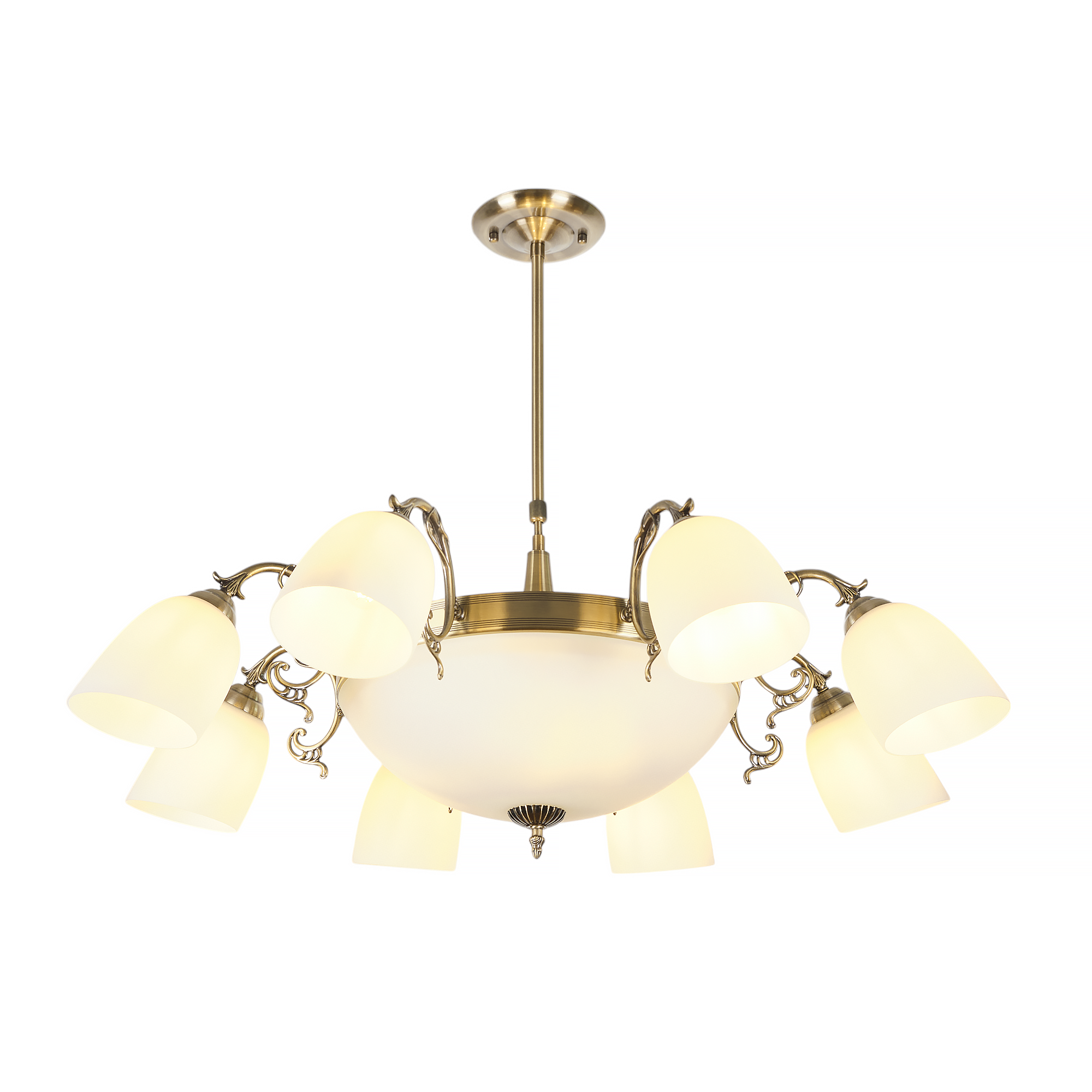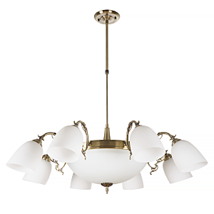 Допускается отличие страны-изготовителя, указанной в характеристиках. Линии производства могут находиться в нескольких государствах. Это не влияет на качество изготовления товара: все заводы данного бренда работают по общим стандартам, а готовые изделия проходят соответствующий контроль.Россия Коллекция Biene ЦветЦвет арматуры Бронза Цвет Бронза Материал арматуры Металл Цвет плафона Белый Материал плафона Стекло РазмерыВысота (мм) 930 Длина (мм) 820 Диаметр (мм) 820 Высота минимальная (мм) 330 Ширина (мм) 820 ЭлектрикаКоличество ламп (шт) 11 Цоколь E27 Лампочки в комплекте Нет в комплекте Мощность лампы (Вт) 60 Общая мощность (Вт) 480 Напряжение (В) 220 Дополнительная информацияСпособ крепления Планка Степень защиты (IP) IP20 Вес (Кг) 5,9 -