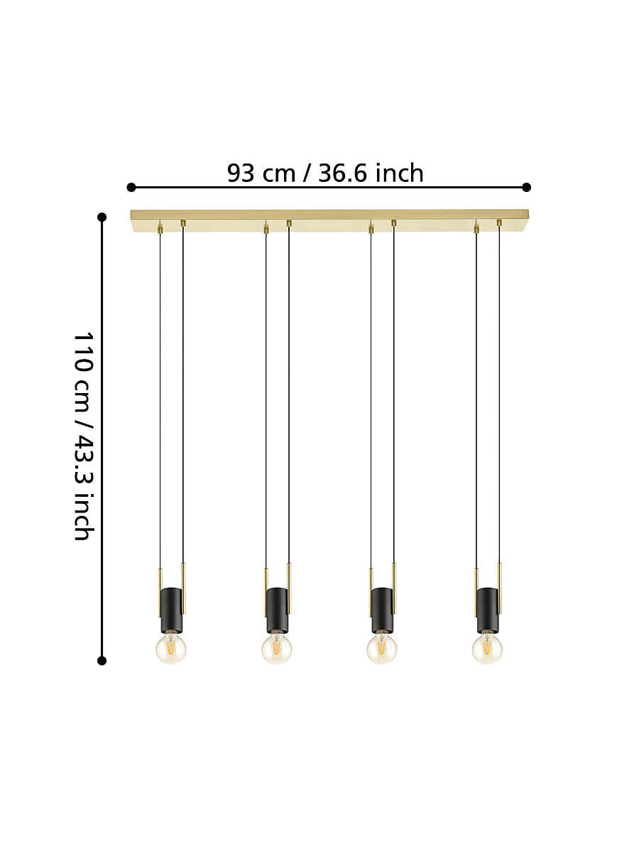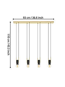 Допускается отличие страны-изготовителя, указанной в характеристиках. Линии производства могут находиться в нескольких государствах. Это не влияет на качество изготовления товара: все заводы данного бренда работают по общим стандартам, а готовые изделия проходят соответствующий контроль.Австрия Коллекция Bitachito ЦветЦвет арматуры Черный, латунный Цвет Черный Материал арматуры Сталь РазмерыВысота (мм) 1100 Длина (мм) 930 Ширина (мм) 55 ЭлектрикаКоличество ламп (шт) 4 Цоколь E27 Лампочки в комплекте Нет в комплекте Мощность лампы (Вт) 40 Дополнительная информацияСтепень защиты (IP) IP20 Вес (Кг) 3,323 Диммирование Нет Тип подвеса На тросах Количество подвесов Много подвесных элементов -