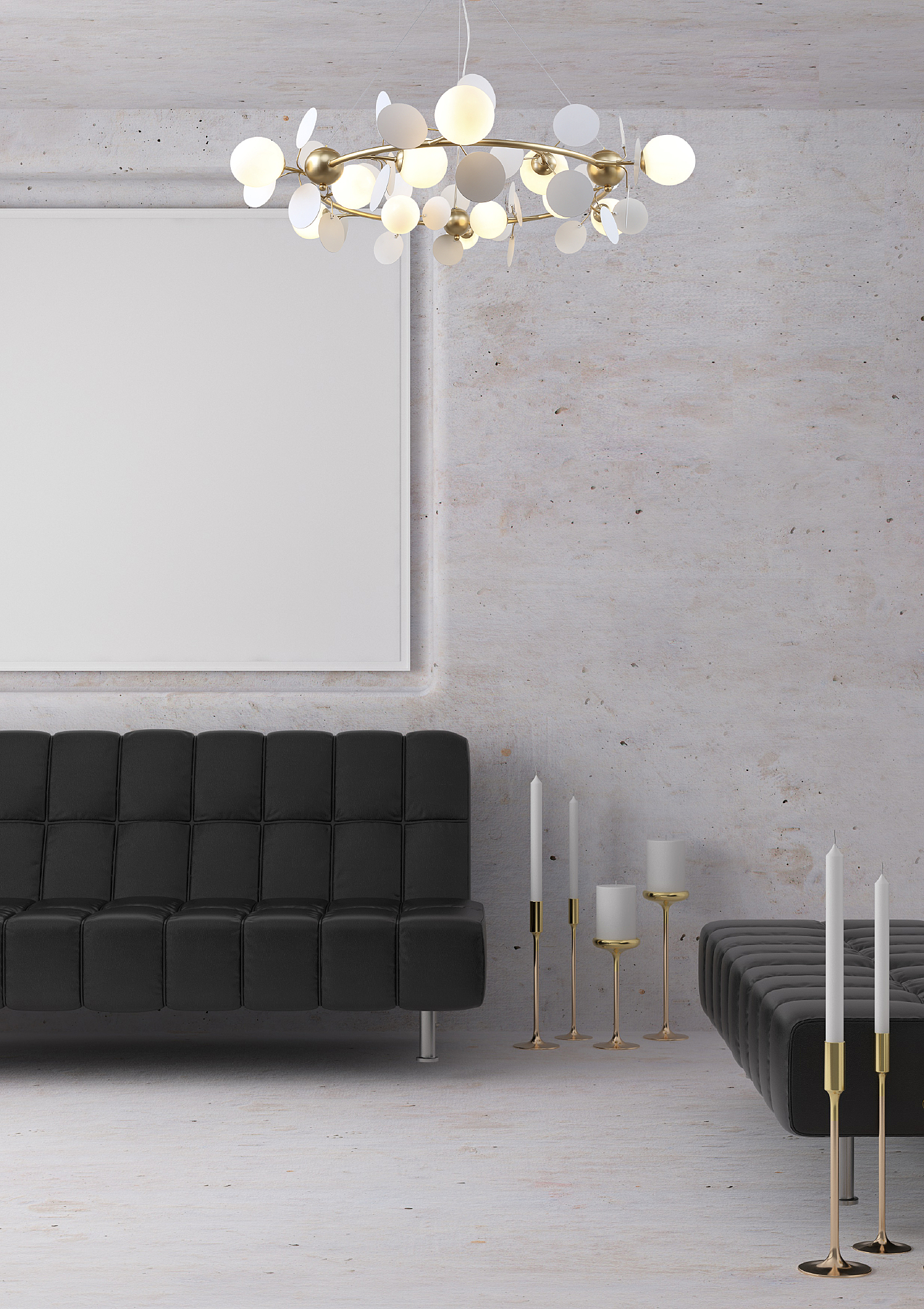 Допускается отличие страны-изготовителя, указанной в характеристиках. Линии производства могут находиться в нескольких государствах. Это не влияет на качество изготовления товара: все заводы данного бренда работают по общим стандартам, а готовые изделия проходят соответствующий контроль.Германия Коллекция Bliss ЦветЦвет арматуры золотой Цвет Золото Материал арматуры Металл Цвет декора белый, Золотой Цвет плафона молочный Материал декора Шар, Пластина Материал плафона Стекло РазмерыВысота (мм) 1120 Диаметр (мм) 1050 Высота минимальная (мм) 240 Ширина (мм) 1050 ЭлектрикаКоличество ламп (шт) 12 Цоколь G9 Лампочки в комплекте Нет в комплекте Мощность лампы (Вт) 25 Общая мощность (Вт) 300 Площадь освещения 20 Дополнительная информацияСпособ крепления Планка Вес (Кг) 5,3 Тип подвеса На тросах -