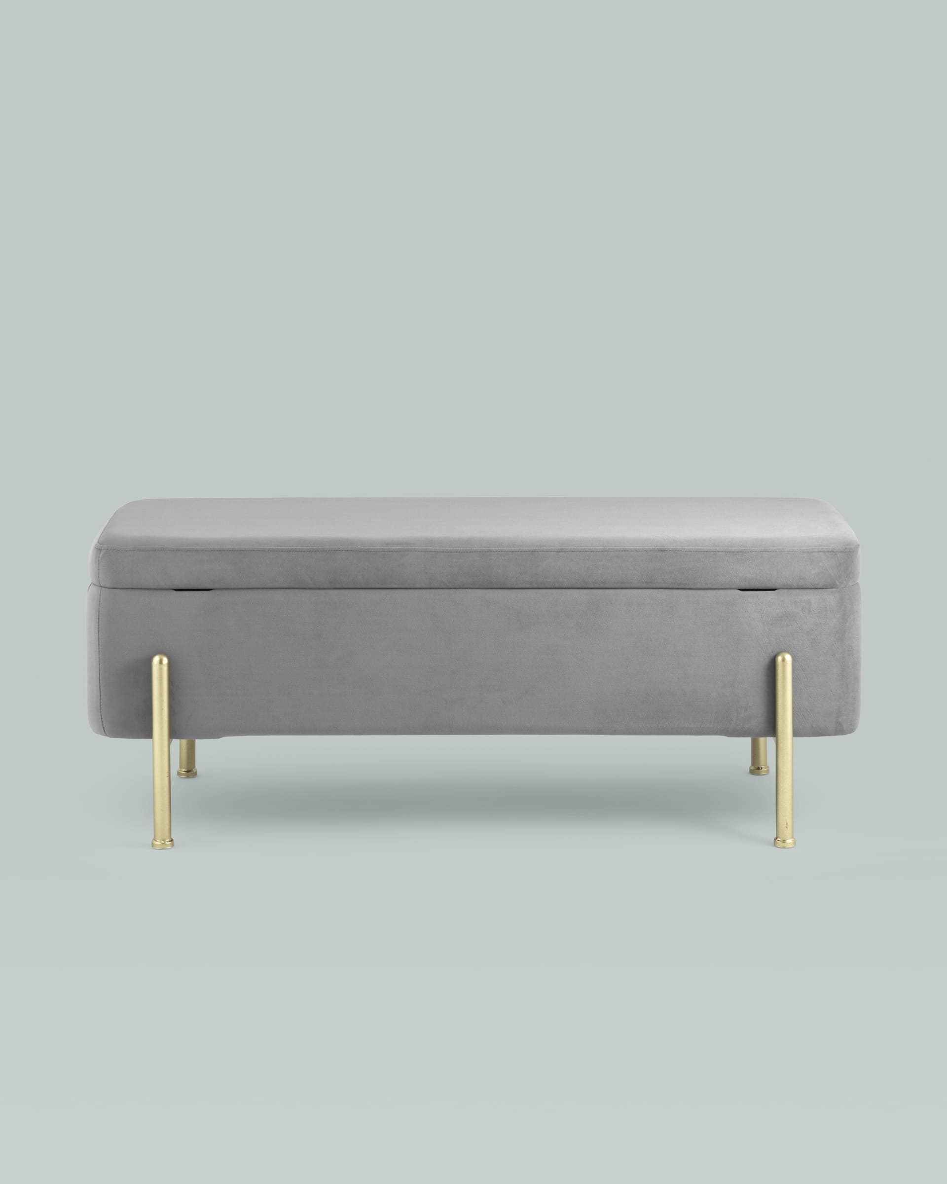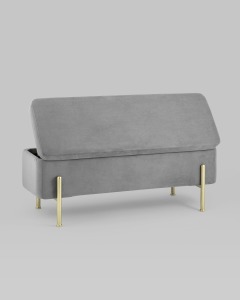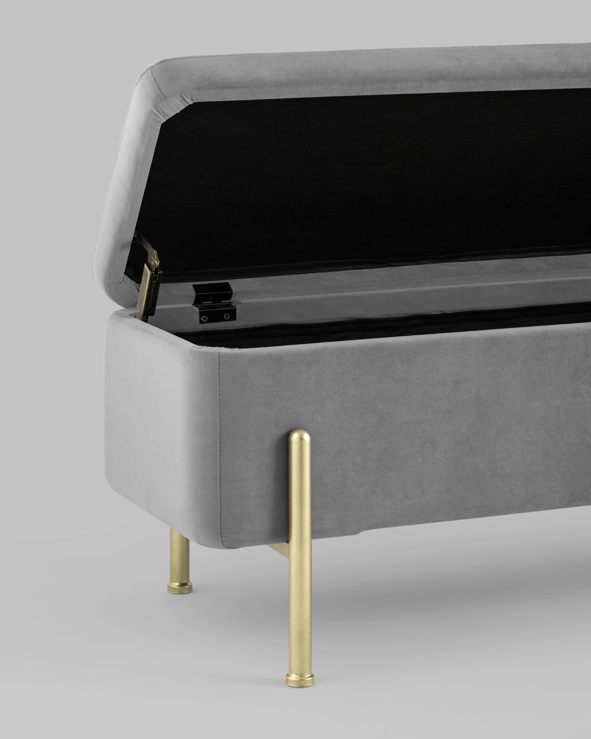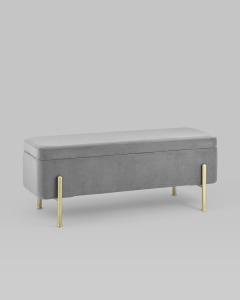 Банкетка Болейн с ящиком велюр серый ножки из металла цвет золото