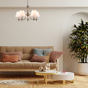 Подвесной светильник 5x40Вт E14, металл/ткань, сатин никель