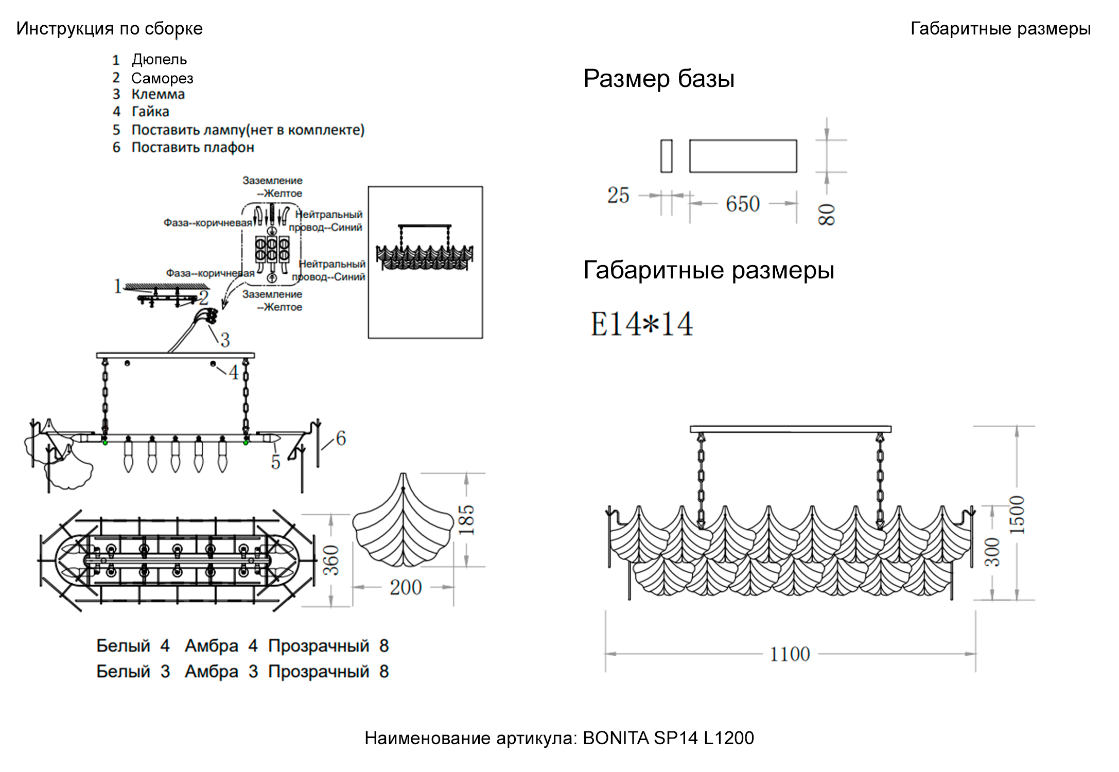 | Цвет плафона | Белый, прозрачный, янтарный |