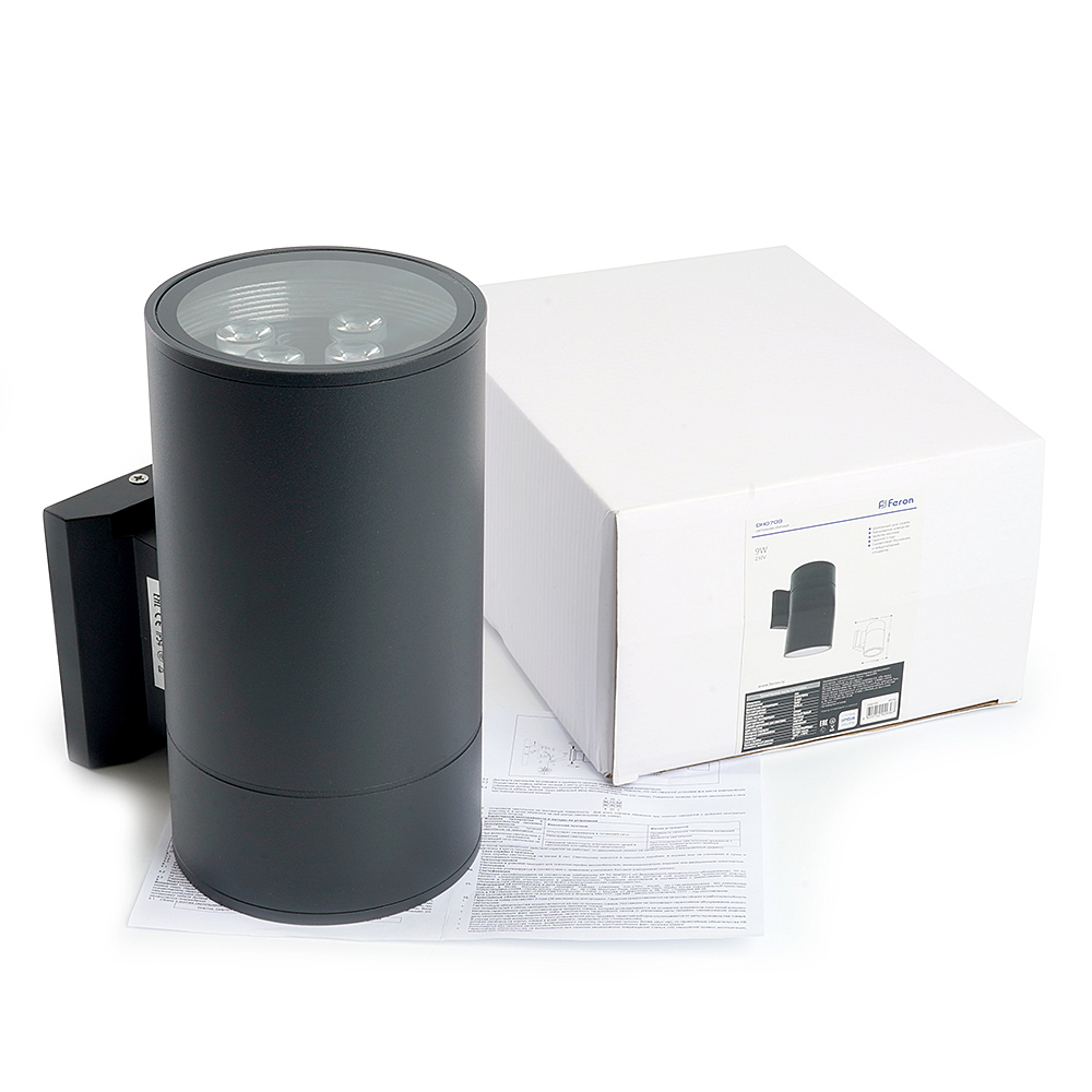 Светильник уличный светодиодный, на стену (ДБУ) FERON DH0709, серия Бостон, 9W, 2700К (теплый белый), 230V/50Гц, 850Lm, IP54, 9LED*SMD3030, класс защиты 1, раб.t -40градусов...+40градусов, цвет черный, корпус алюминий, 110*170*200мм,