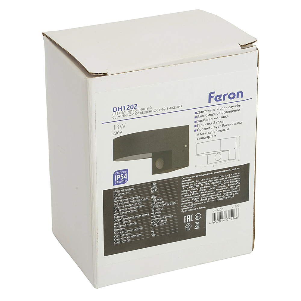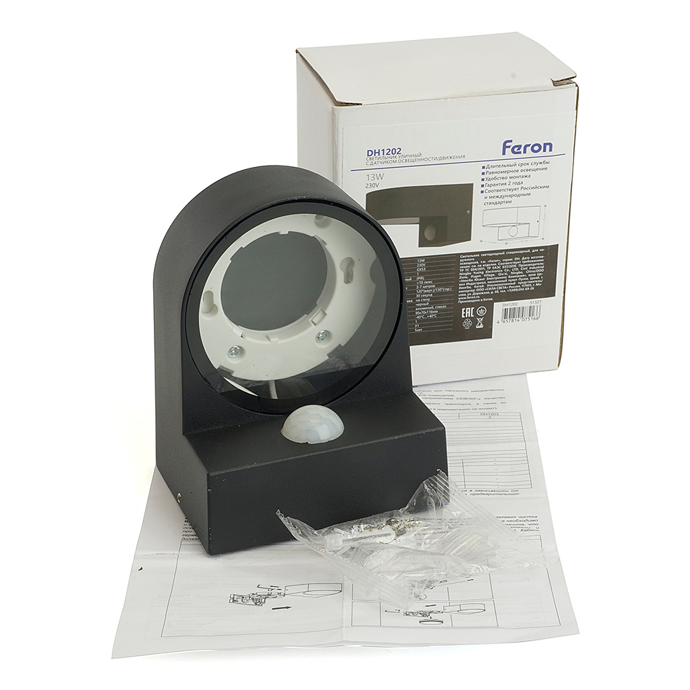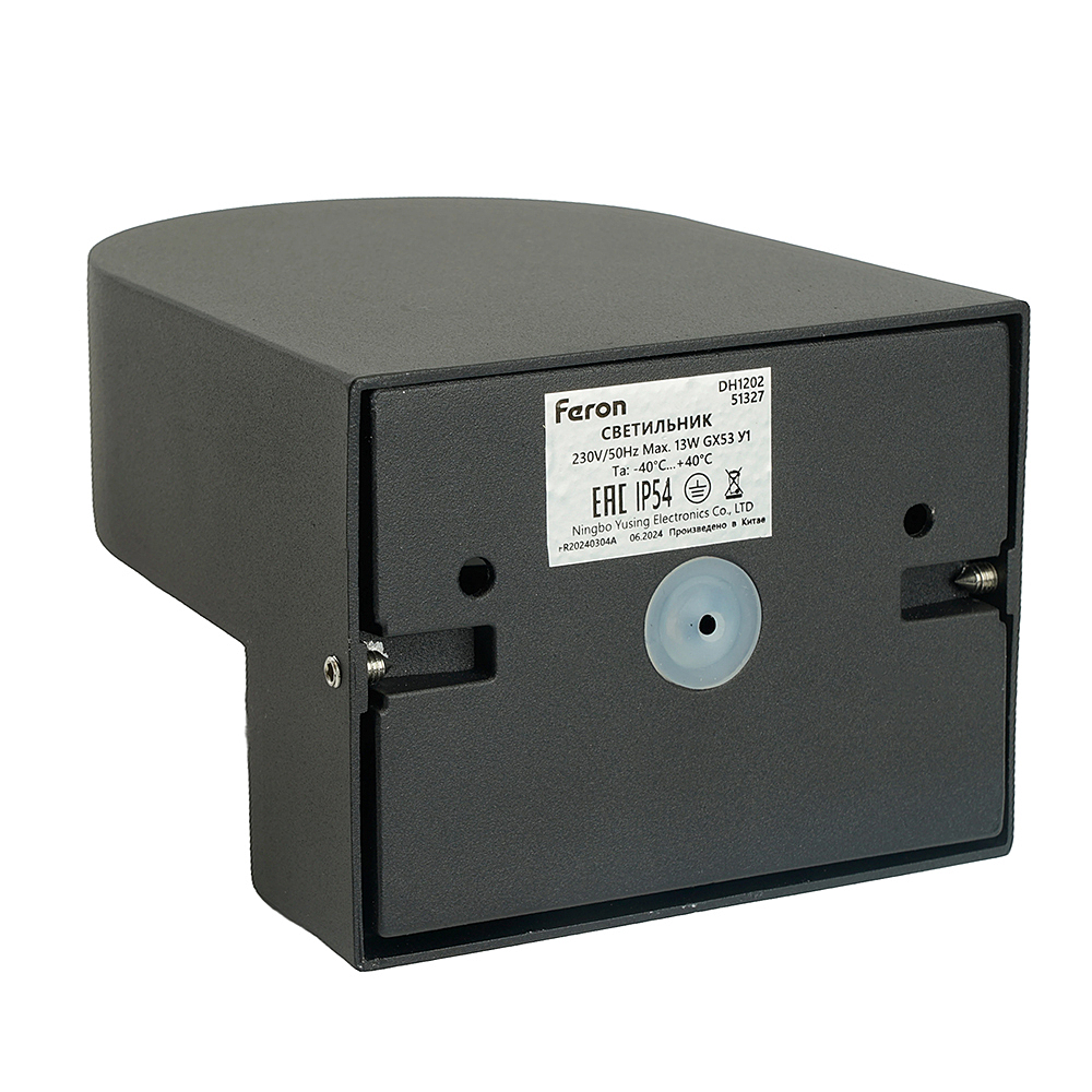 Светильник садово-парковый, серии "Бостон", (ДБУ) FERON DH1202 GX53, 230V, IP54, цвет черный, на стену , 92*70*115мм