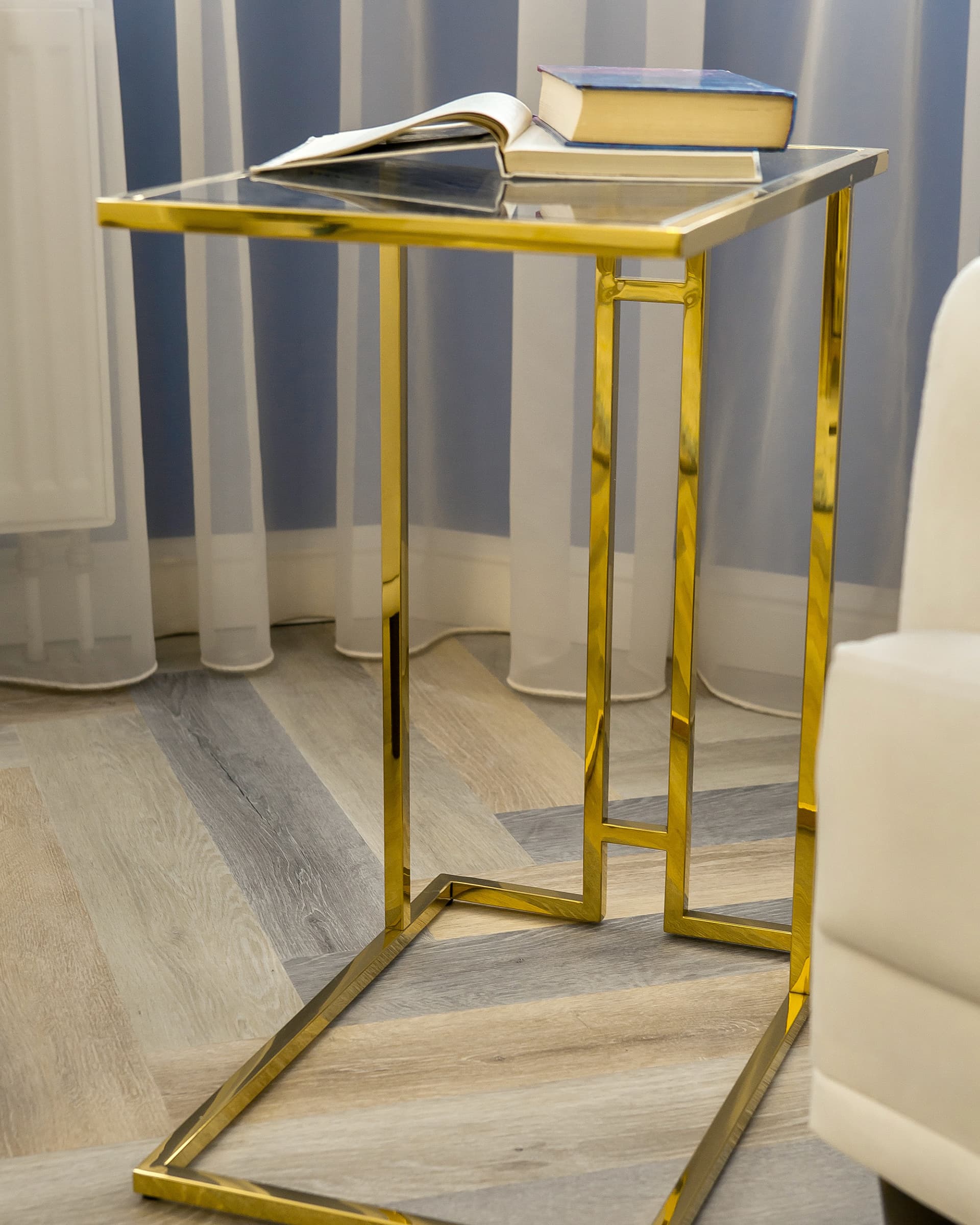 Стол журнальный Бостон 50*32 каркас из нержавеющей стали золото стекло smoke