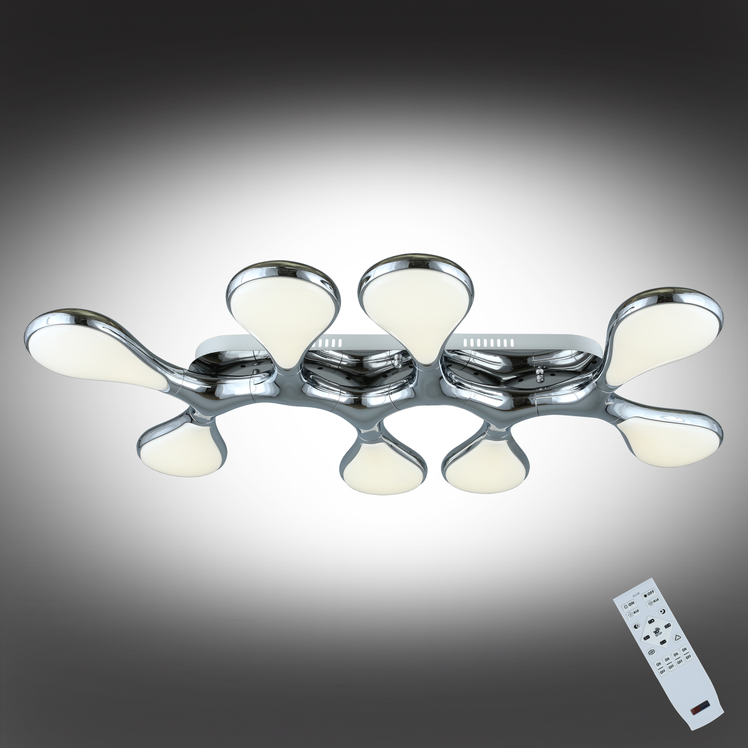 Допускается отличие страны-изготовителя, указанной в характеристиках. Линии производства могут находиться в нескольких государствах. Это не влияет на качество изготовления товара: все заводы данного бренда работают по общим стандартам, а готовые изделия проходят соответствующий контроль.Китай Коллекция Bovalino ЦветЦвет арматуры Хром Цвет Хром Материал арматуры Металл Цвет плафона Белый Материал плафона Пластик РазмерыВысота (мм) 180 Длина (мм) 900 Ширина (мм) 550 ЭлектрикаКоличество ламп (шт) 8 Цоколь LED Мощность лампы (Вт) 8 Дополнительная информацияСпособ крепления Планка Техническая оссобеность Ночной режим, Регулировка яркости, Полностью светодиодная, Регулировка цветовой температуры Тип управления Пульт ДУ -