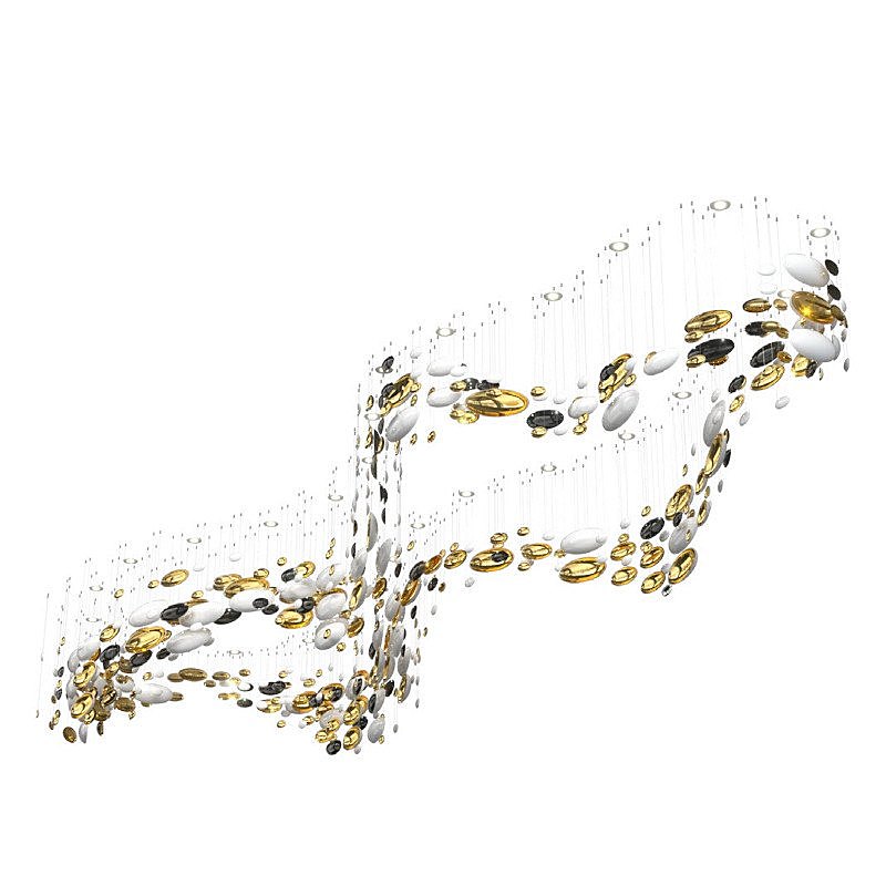 Допускается отличие страны-изготовителя, указанной в характеристиках. Линии производства могут находиться в нескольких государствах. Это не влияет на качество изготовления товара: все заводы данного бренда работают по общим стандартам, а готовые изделия проходят соответствующий контроль.Италия Коллекция Bowls ЦветЦвет арматуры Золото, Белый Цвет Золото Материал арматуры Металл Цвет плафона Белый, золото Материал плафона Стекло РазмерыВысота (мм) 800 Длина (мм) 6400 Ширина (мм) 1900 ЭлектрикаКоличество ламп (шт) 27 Цоколь GU10 Мощность лампы (Вт) 50 Напряжение (В) 220 Дополнительная информацияМесто установки на потолок -