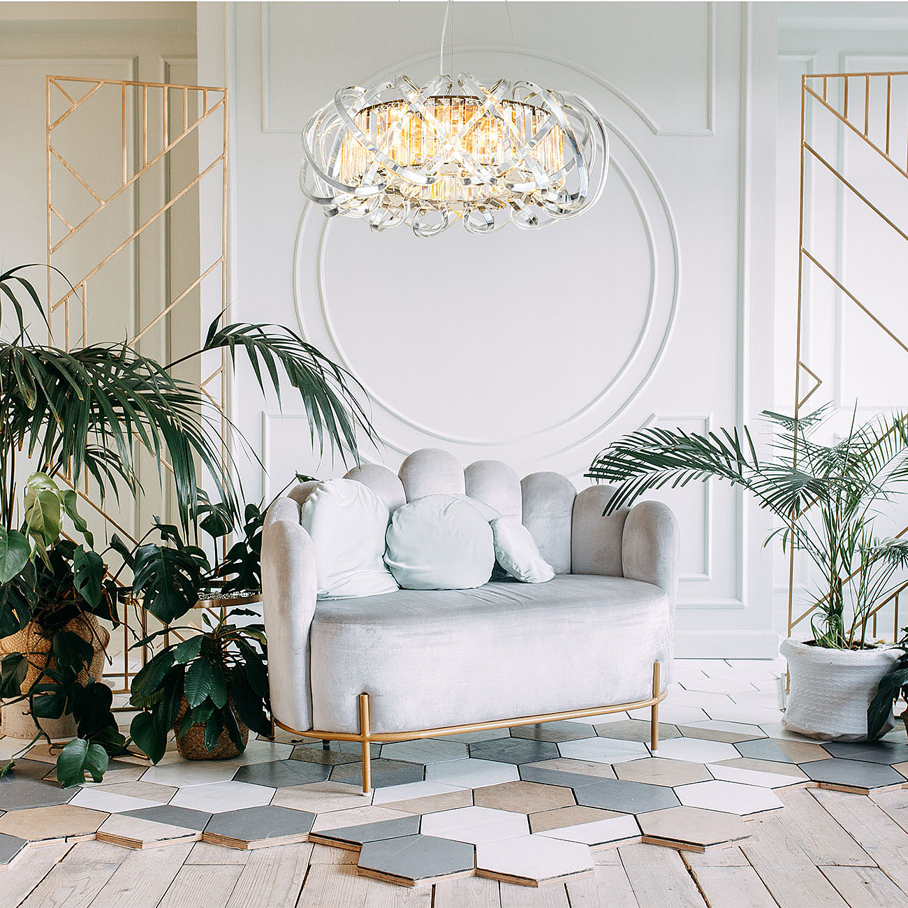 Преданные поклонники хрустальных творений по достоинству оценят изящную коллекцию BRACCIA. Объединённые из нескольких ярусов различного диаметра, светильники напоминают восход солнца. Прозрачные кристаллы из хрусталя и стекла, а также яркий цвет металла, подобно первым лучикам солнца, танцуют на горизонте под бесшумную мелодию предстоящего дня.