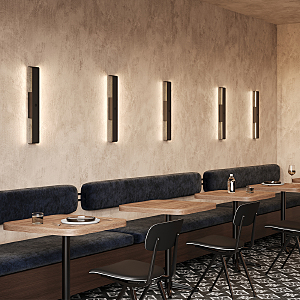 Алюминиевая арматура черного цвета с минимальным отступом от стены 45 мм. Три размера светильников, могут быть размещены как вертикально, так и горизонтально. LED-источник с трехступенчатым переключением температуры света 2700-3000-4000К и высоким CRI 90. Угол рассеивания 110град.. Сенсорный переключатель на корпусе с функцией диммирования. Создают эффект переотраженного света на стене. Предназначены для современного интерьера, обеспечивая как функциональное освещение, так и декоративный эффект.