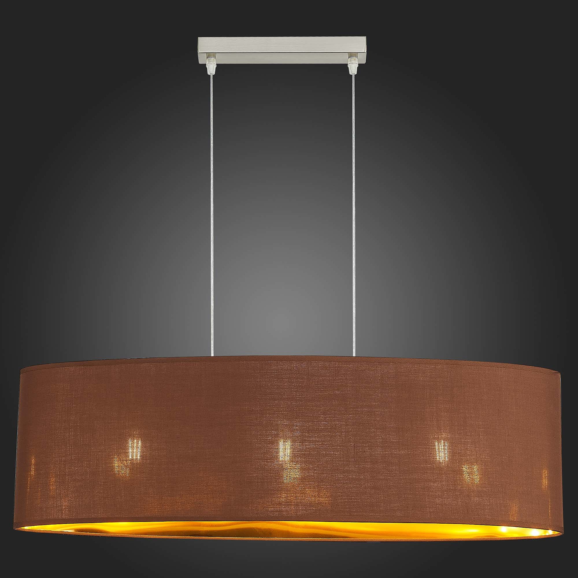 Допускается отличие страны-изготовителя, указанной в характеристиках. Линии производства могут находиться в нескольких государствах. Это не влияет на качество изготовления товара: все заводы данного бренда работают по общим стандартам, а готовые изделия проходят соответствующий контроль.Италия Коллекция Brescia ЦветЦвет арматуры Никель Цвет Кофейный Материал арматуры Металл Цвет плафона золото, кофейный Материал плафона Текстиль РазмерыВысота (мм) 1200 Длина (мм) 750 Высота минимальная (мм) 220 Ширина (мм) 220 ЭлектрикаКоличество ламп (шт) 3 Цоколь E27 Тип лампы Накаливания Мощность лампы (Вт) 40 Общая мощность (Вт) 120 Площадь освещения 6 Дополнительная информацияСпособ крепления Планка Степень защиты (IP) IP20 Тип подвеса На тросах Количество подвесов Одиночный подвес -