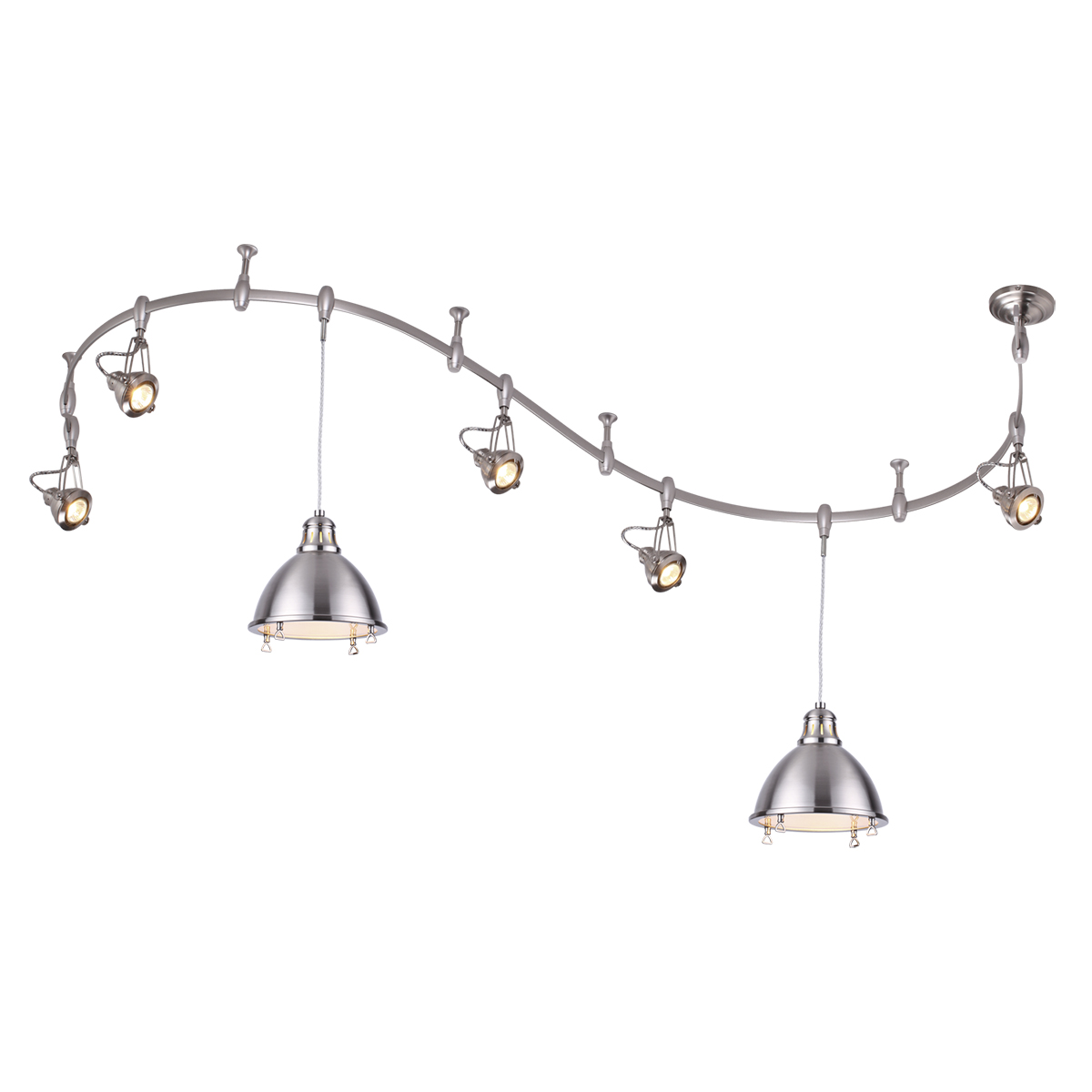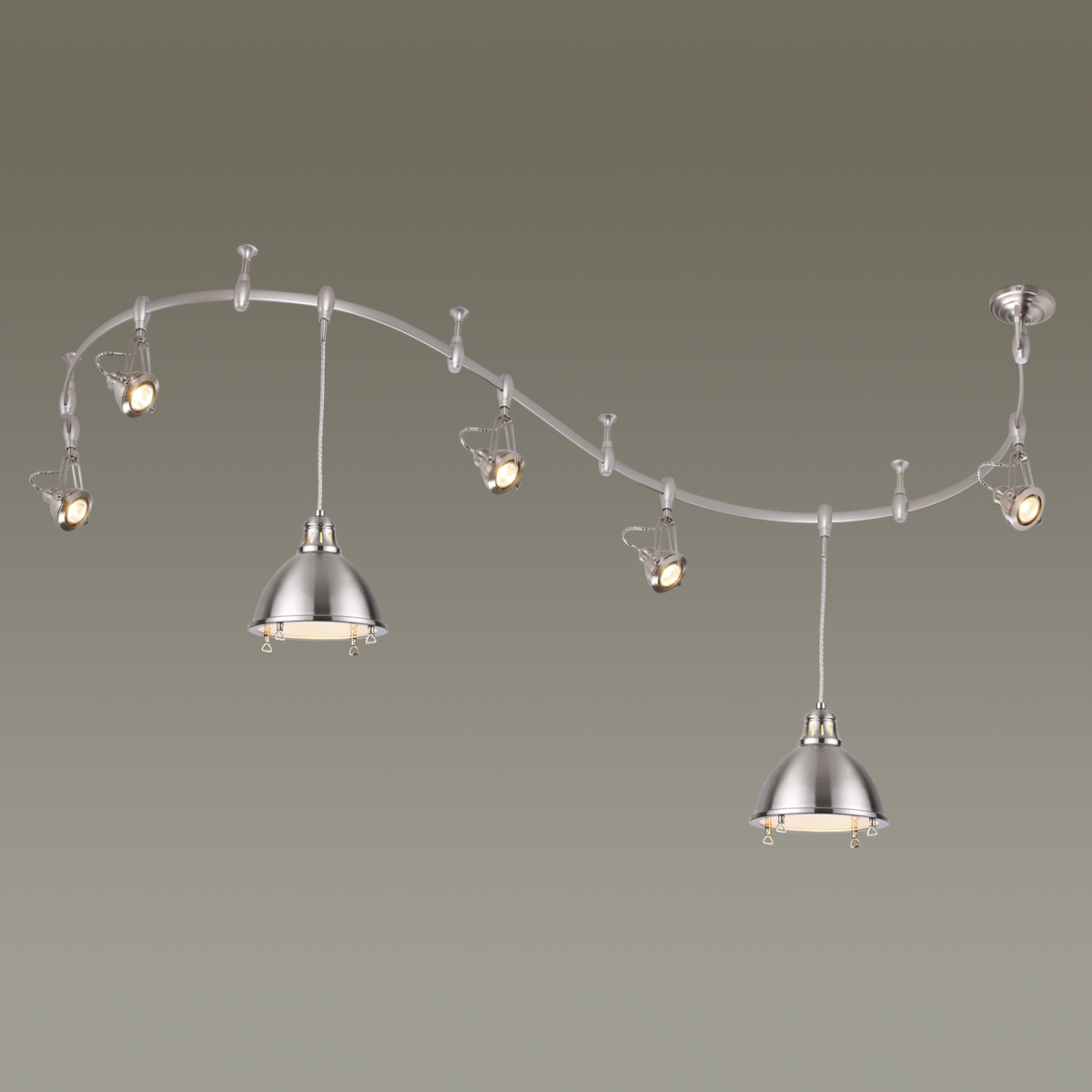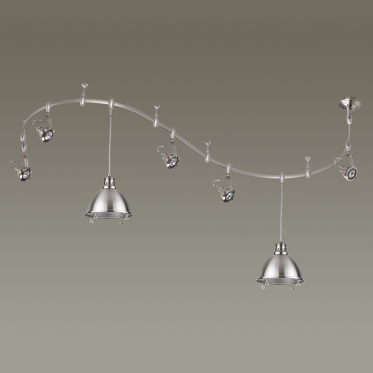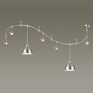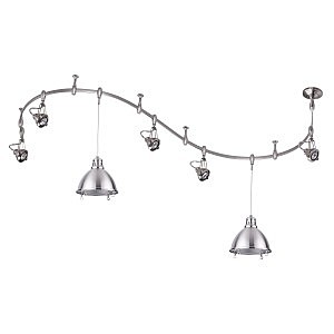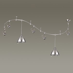 Для эклектичной серии Breta, выполненой в цвете глянцевого никеля, одновременно характерны мотивы Ретро, Урбанистики и стиля Лофт. Светильник комплектуется пятью плафонами с патроном GU10 и двумя подвесами E27 60W для крепления на треке и для самостоятельного использования. Светильник идеально подходит для установки в кафе, на кухне, жилом помещении.