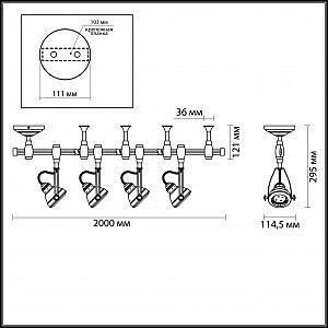Допускается отличие страны-изготовителя, указанной в характеристиках. Линии производства могут находиться в нескольких государствах. Это не влияет на качество изготовления товара: все заводы данного бренда работают по общим стандартам, а готовые изделия проходят соответствующий контроль.Италия Коллекция Breta ЦветЦвет арматуры Серебро Цвет Никель Материал арматуры Металл Цвет плафона серебро Материал плафона Металл РазмерыВысота (мм) 295 Длина (мм) 2000 Ширина (мм) 114 ЭлектрикаКоличество ламп (шт) 4 Цоколь GU10 Мощность лампы (Вт) 200 Общая мощность (Вт) 200 Напряжение (В) 220 Дополнительная информацияСпособ крепления Планка Степень защиты (IP) IP20 Вес (Кг) 1,740 Количество фаз Рейлинговый -