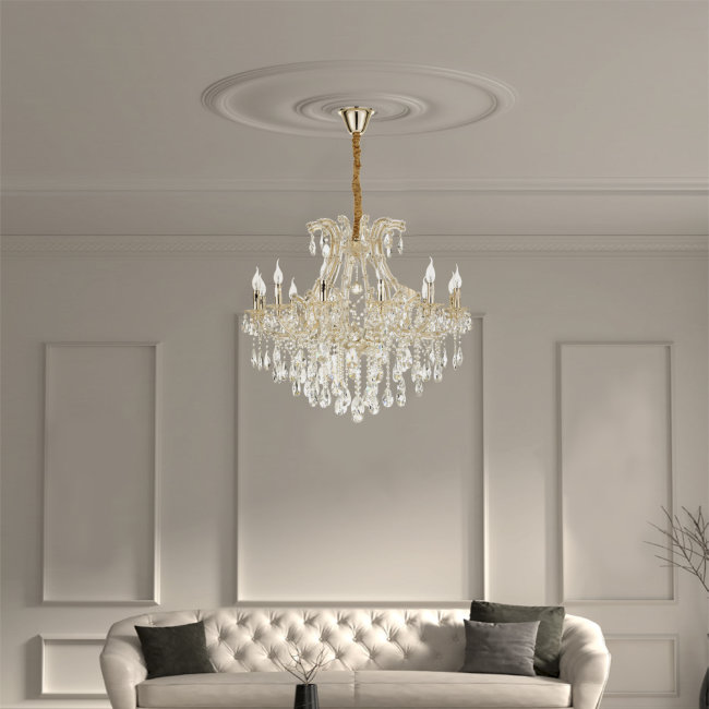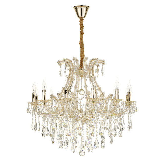 Допускается отличие страны-изготовителя, указанной в характеристиках. Линии производства могут находиться в нескольких государствах. Это не влияет на качество изготовления товара: все заводы данного бренда работают по общим стандартам, а готовые изделия проходят соответствующий контроль.Испания Коллекция Brianna ЦветЦвет арматуры Золото Цвет Золото Материал арматуры Металл Цвет декора прозрачный Материал декора Хрусталь РазмерыВысота (мм) 1400 Длина (мм) 950 Диаметр (мм) 950 Высота минимальная (мм) 800 Ширина (мм) 950 ЭлектрикаКоличество ламп (шт) 12 Цоколь E14 Тип лампы Светодиодная, Накаливания, Энергосберегающая (КЛЛ) Лампочки в комплекте Нет в комплекте Мощность лампы (Вт) 40 Площадь освещения 36 Дополнительная информацияСтепень защиты (IP) IP20 Вес (Кг) 21 Тип подвеса На цепи -