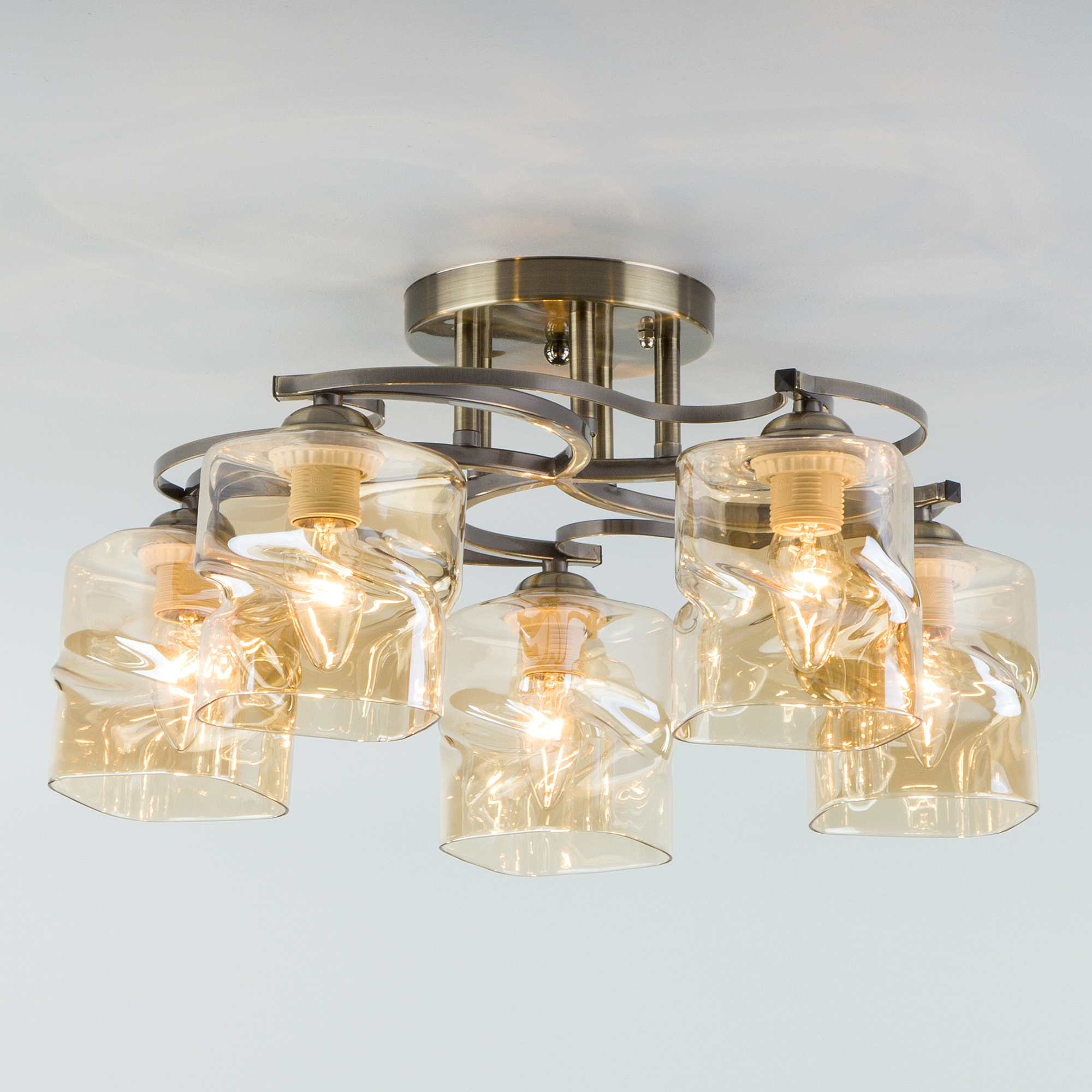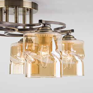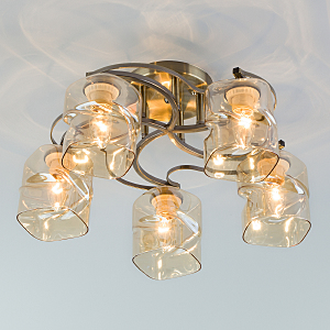 Допускается отличие страны-изготовителя, указанной в характеристиках. Линии производства могут находиться в нескольких государствах. Это не влияет на качество изготовления товара: все заводы данного бренда работают по общим стандартам, а готовые изделия проходят соответствующий контроль.Китай Коллекция Brice ЦветЦвет арматуры Античная бронза Цвет Бронза Материал арматуры Металл Цвет плафона тонированный Материал плафона Стекло РазмерыВысота (мм) 240 Длина (мм) 480 Ширина (мм) 480 ЭлектрикаКоличество ламп (шт) 5 Цоколь E27 Мощность лампы (Вт) 40 Напряжение (В) 220 Площадь освещения 15 Дополнительная информацияСпособ крепления Планка Степень защиты (IP) IP20 -