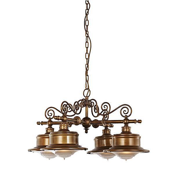 Допускается отличие страны-изготовителя, указанной в характеристиках. Линии производства могут находиться в нескольких государствах. Это не влияет на качество изготовления товара: все заводы данного бренда работают по общим стандартам, а готовые изделия проходят соответствующий контроль.Италия Коллекция Brigg ЦветЦвет арматуры Античная бронза Цвет Бронза Материал арматуры Металл Цвет плафона античная бронза Материал плафона Металл РазмерыВысота (мм) 400 Диаметр (мм) 740 ЭлектрикаКоличество ламп (шт) 4 Цоколь E27 Мощность лампы (Вт) 60 Напряжение (В) 220 Дополнительная информацияТип подвеса На цепи -