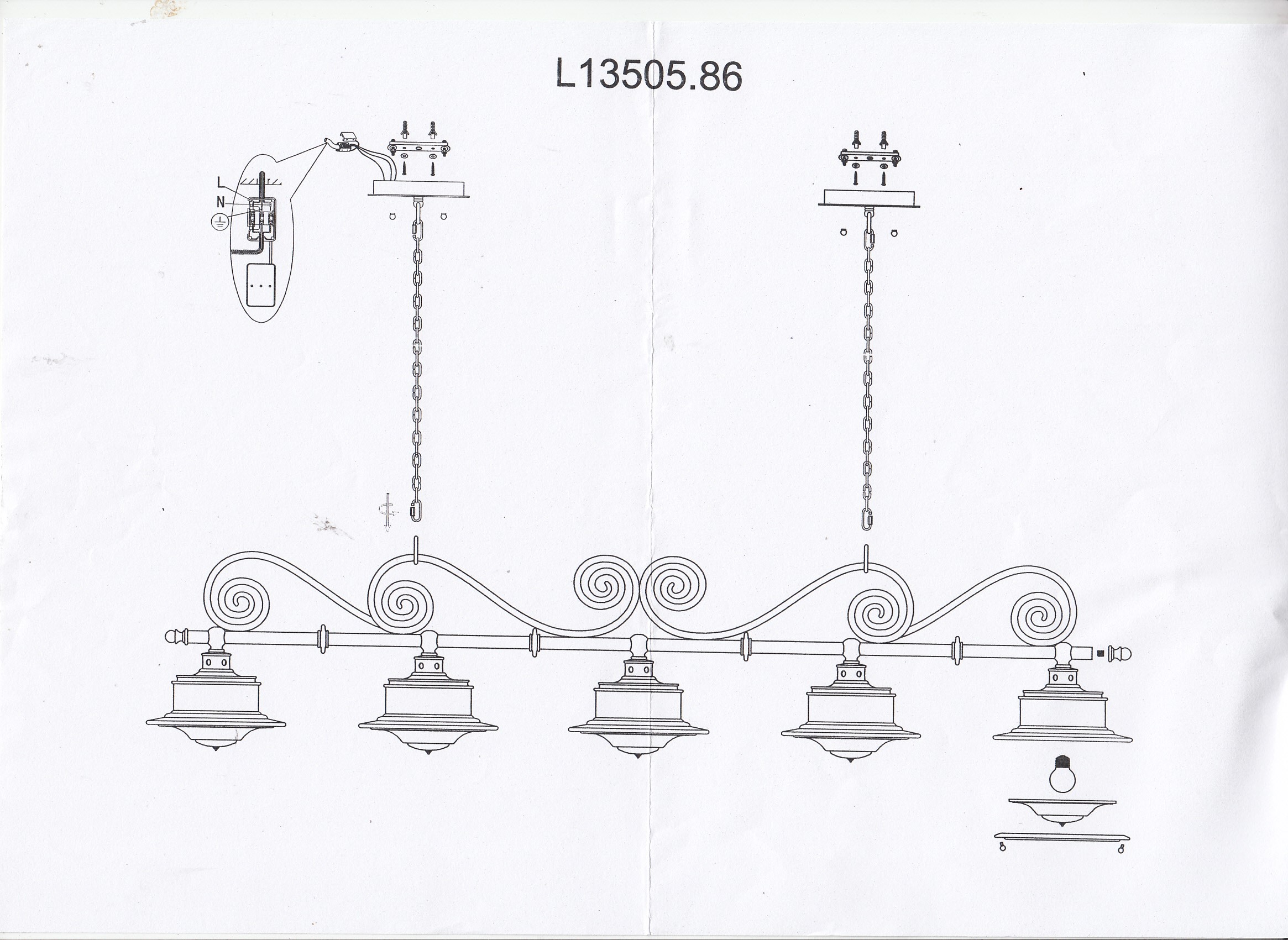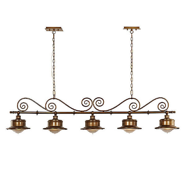 Допускается отличие страны-изготовителя, указанной в характеристиках. Линии производства могут находиться в нескольких государствах. Это не влияет на качество изготовления товара: все заводы данного бренда работают по общим стандартам, а готовые изделия проходят соответствующий контроль.Италия Коллекция Brigg ЦветЦвет арматуры Античная бронза Цвет Бронза Материал арматуры Металл Цвет плафона античная бронза Материал плафона Металл РазмерыВысота (мм) 400 Длина (мм) 1760 Диаметр (мм) 1760 Ширина (мм) 250 ЭлектрикаКоличество ламп (шт) 5 Цоколь E27 Мощность лампы (Вт) 60 Напряжение (В) 220 Дополнительная информацияТип подвеса На цепи Количество подвесов Одиночный подвес -