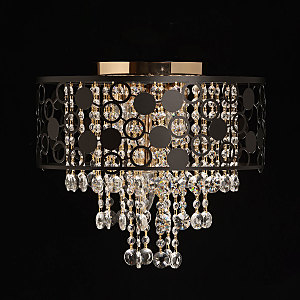 Дизайн металлического плафона по аналогии с молекулярной структурой отображает нестандартную красоту природы, что делает светильник эмоциональным объектом освещения. Хрустальные элементы искусно декорируют источники света и создает эффектные узоры на стенах. Правильные геометрические формы, четкая проработка деталей, черный цвет основания добавляют стиля в интерьер. Гармоничное сочетание черного и золотого определяет модный контраст и дизайн. Заменяемые источники света удобны в эксплуатации.