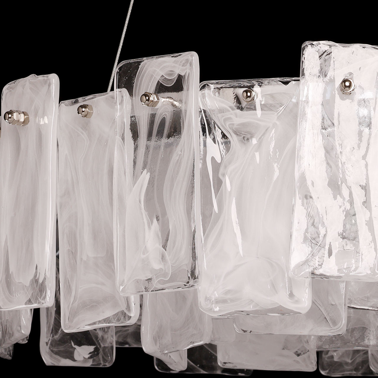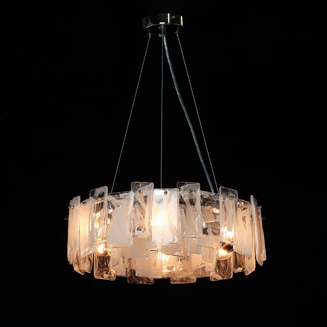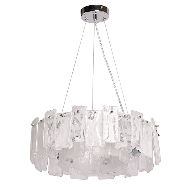 Современный цвет хрома придает люстре динамики и стиля.. Трендовый декор пластинами из стекла, имитирующего природные минералы, привлекает к себе внимание. Открытые источники света хорошо осветят пространство комнаты. Возможность регулировать комфортную высоту. Заменяемые источники света удобны в эксплуатации.