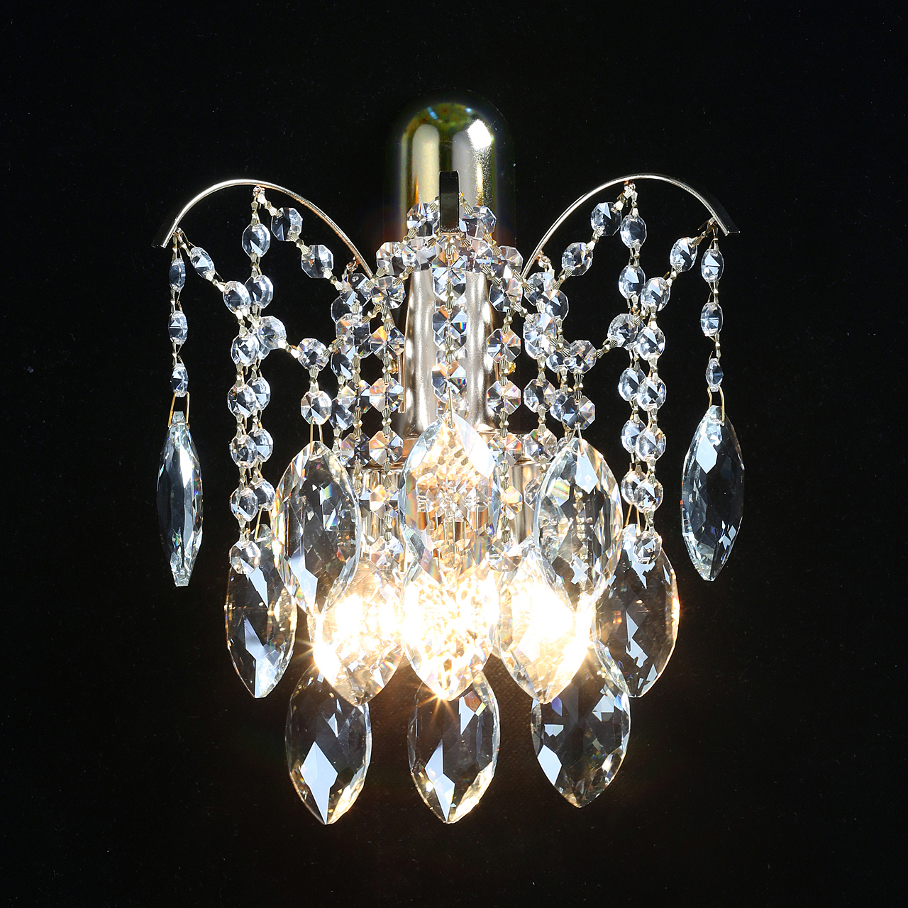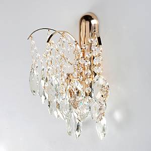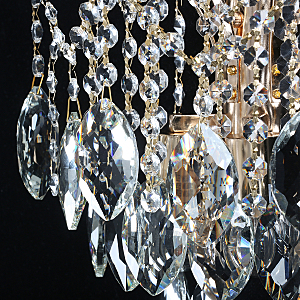 Прозрачный хрусталь внушительных размеров.создает красивую игру света.Полноценное освещение, благодаря высокой мощности ламп.Заменяемые источники света удобны в эксплуатации.Полная семья, состоящая из бра, люстр на 4 и 8 ламп.
